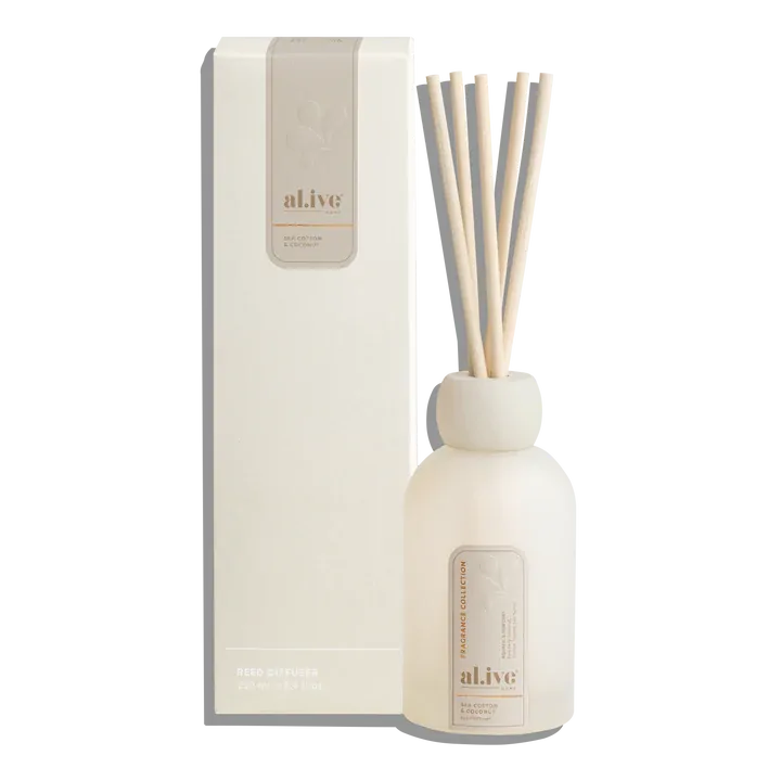 A calming Reed Diffuser that continuously fills your space with powdery cotton flower, ocean air and delicate florals. This gentle coastal fragrance provides lasting serenity and clean, airy freshness.