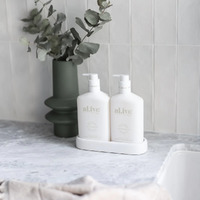 The Duo includes a 500ml hand & body wash, 500ml hand & body lotion and a matching tray.