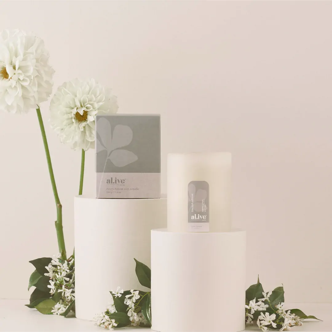 The Ivory Bloom Soy Candle brings a sense of stillness through a limited edition scent inspired by white florals. Delicate yet layered, the fragrance blends refined florals with soft notes of cedarwood and musk, evoking a freshly cut bouquet with a subtle powdery finish.