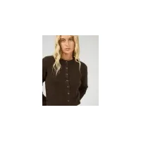 • Classic and essential - the Bayside Cardigan in Brown is a timeless knit designed for effortless everyday wear. Cut in a regular fit, it offers a neat silhouette that sits comfortably through the body without feeling restrictive. Crafted from recycled polyester, it provides warmth while remaining lightweight. Buttons down the front allow for versatile styling, whether worn closed as a top or layered open over tees and dresses. This cardigan is an easy choice for work, weekends, and relaxed layering.