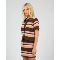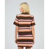 The Copacabana Knit Top brings effortless charm to your everyday. Designed with horizontal sunset inspired stripes throughout, this piece will be a personal ray of sunshine in your wardrobe. Delicate scalloped stitching along the hem and sleeve cuffs adds a subtle feminine touch, giving this top a refined, textured edge. Perfect for warm-weather layering or wearing on its own, the Copacabana Knit Top pairs seamlessly with denim, skirts, or tailored shorts.