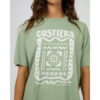 The Costiera Relaxed Tee in sage green offers effortless cool with its laid-back fit and soft, breathable fabric that keeps you comfortable all day. Featuring a bold white hand-drawn organic print, it adds an artistic edge to a neutral palette. Style it with high-waisted jeans or tailored shorts for a relaxed yet refined everyday look that transitions seamlessly from day to night.