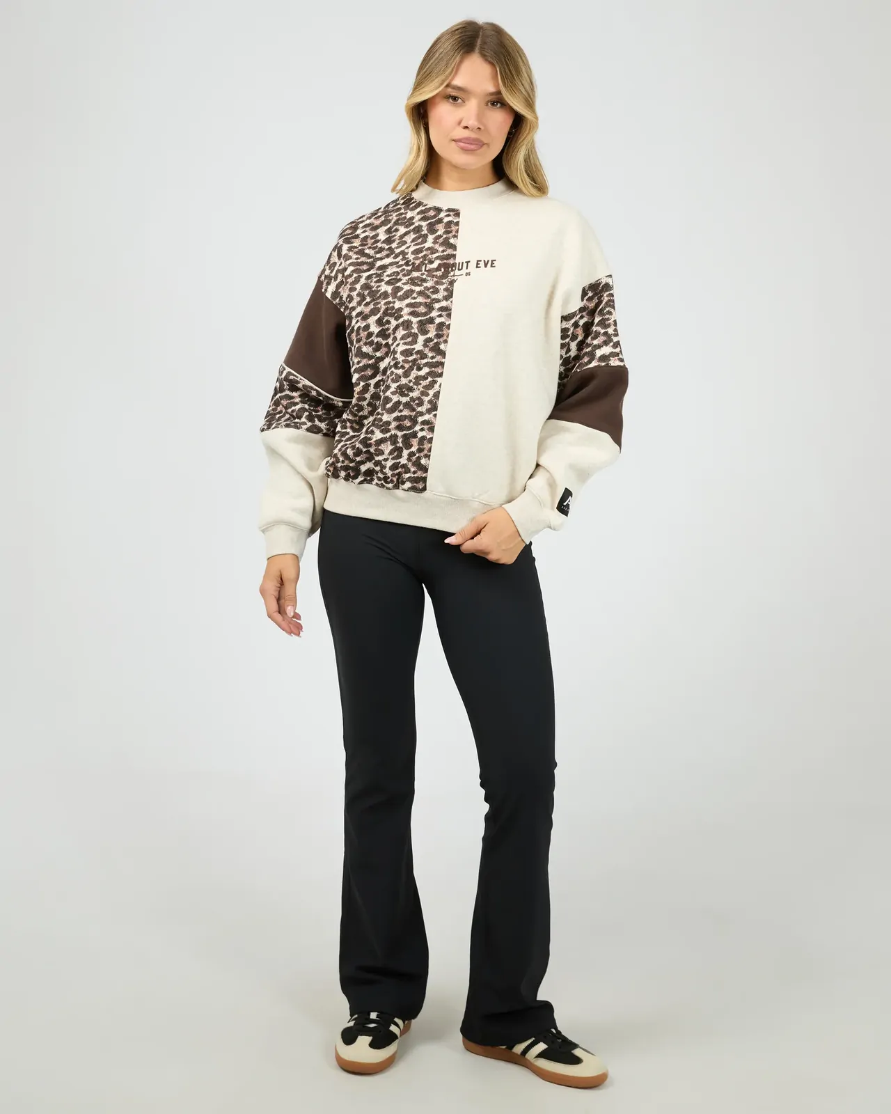 The Into The Wild Box Crew in Oat is a statement sweatshirt designed for effortless, everyday wear. Featuring a modern boxy fit, it sits comfortably on the body with a relaxed, slightly cropped silhouette that’s easy to style. The contrast panel design, paired with subtle All About Eve logo embroidery, adds visual interest and a fashion-forward style. Finished with ribbed trims for a neat fit, this crew is perfect for pairing with leggings, denim, or relaxed trousers. It’s an easy throw-on piece that blends comfort and style for weekends, casual outings, or laid-back days at home.