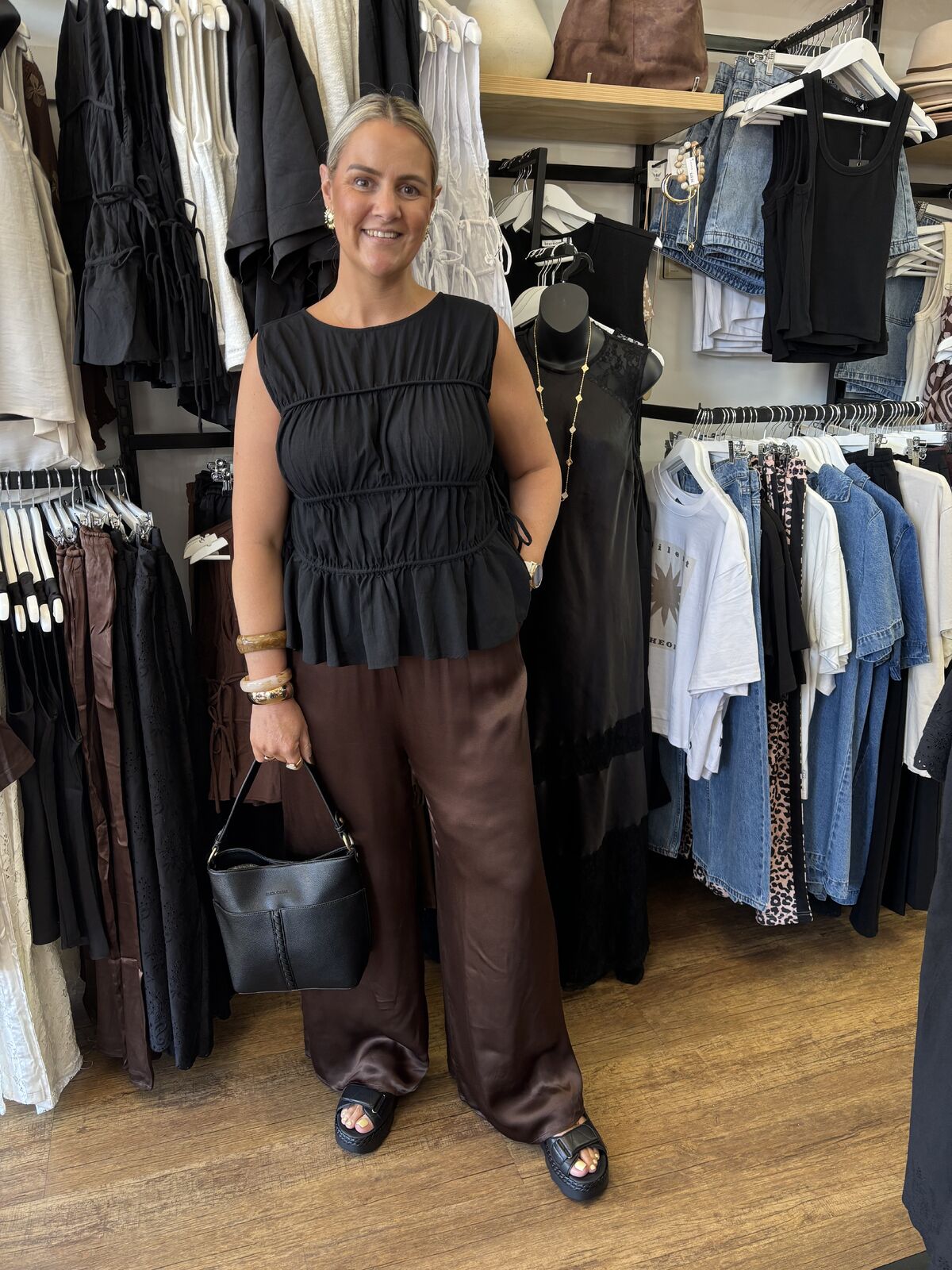 The Lou Lou Tie Top in White features a stylish tie closure and ruched fabric that flatters your silhouette. Its adjustable tie design ensures a comfortable, personalized fit, while the ruched detailing adds texture and charm. Perfect for layering or wearing on its own, this top combines comfort with a chic, versatile look.