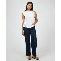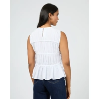 The Lou Lou Tie Top in White features a stylish tie closure and ruched fabric that flatters your silhouette. Its adjustable tie design ensures a comfortable, personalized fit, while the ruched detailing adds texture and charm. Perfect for layering or wearing on its own, this top combines comfort with a chic, versatile look.