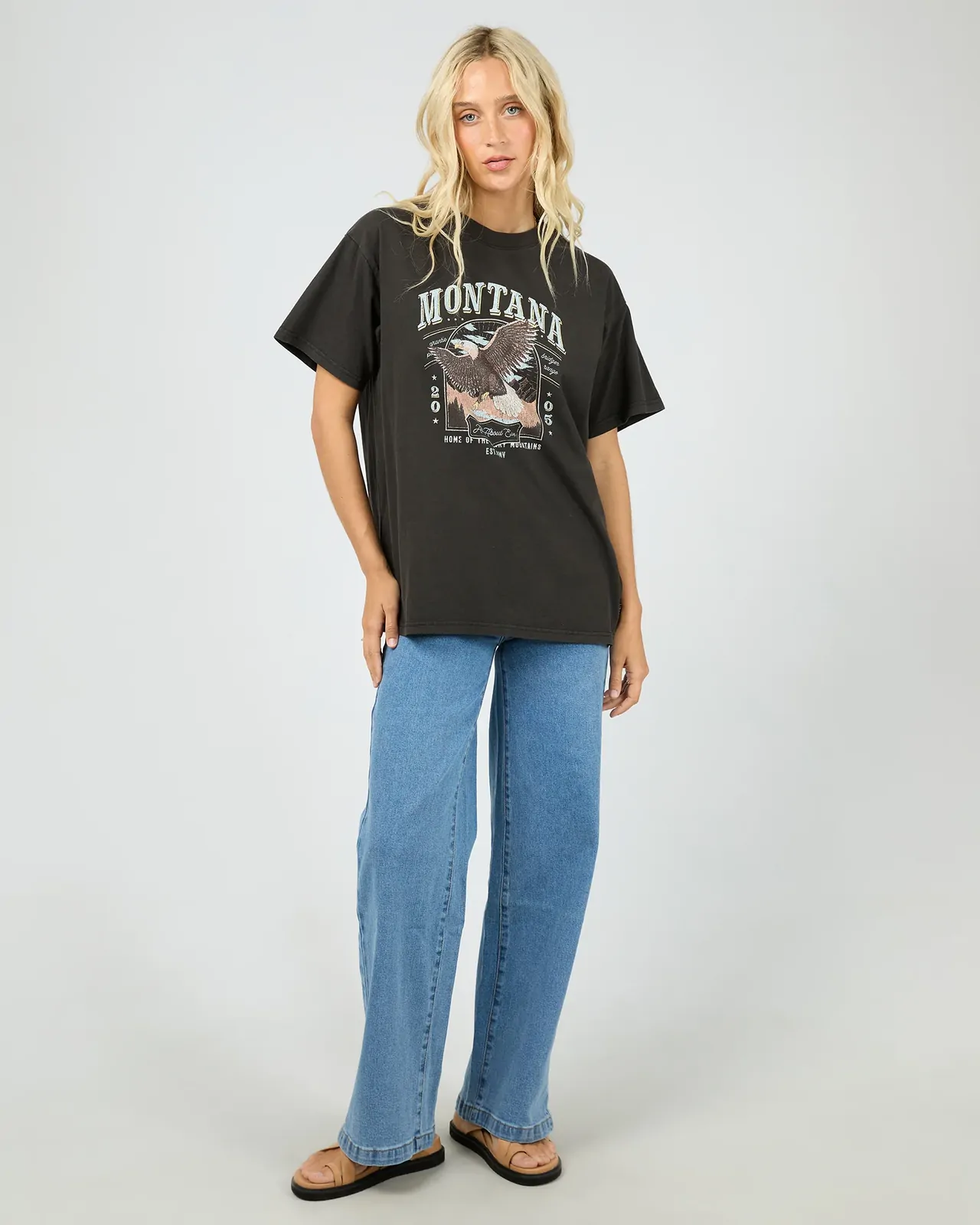 The Montana Relaxed Tee channels vintage Americana vibes with a bold eagle graphic front and centre, printed on soft cotton in a classic vintage white. Its relaxed fit makes it perfect for pairing with denim cut-offs or wide-leg pants for an easy, throw-on-and-go spring look. A statement tee with laid-back attitude.