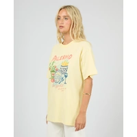 Brighten your day with the Palermo Relaxed Tee in yellow. This is a lightweight, casual style that combines comfort with effortless style that features an exclusive All About Eve print. Its relaxed fit and classic tee silhouette make it easy to wear throughout the warmer months. The Palermo Relaxed Tee is perfect for pairing with shorts, skirts, or jeans for versatile, stylish summer outfits.