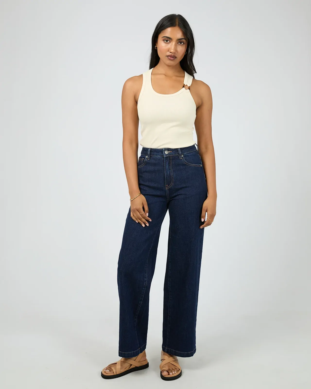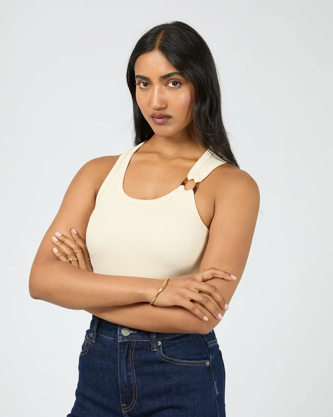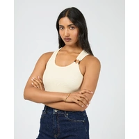 The Sierra Tank will be your go to this summer, the perfect mix of simplicity and style that were sure will become a wardrobe favourite. Made from a soft and comfortable cotton fabrication, this rib tank features a scooped neckline, fitted silhouette and a eye-catching tortoiseshell hardware detail on the strap. Pair with some denim bottoms for a more casual look or with some dress pants and heels for a fun night out.