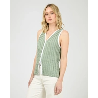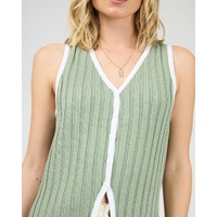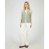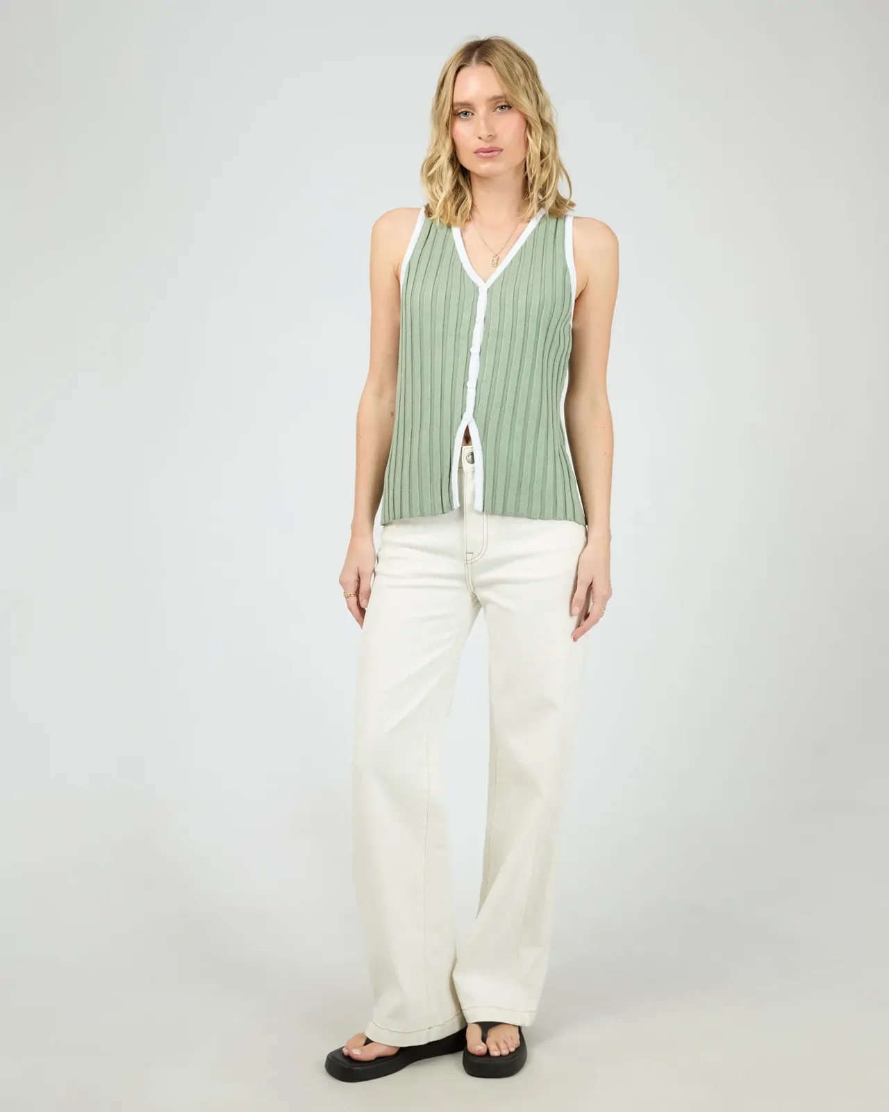 The Sigrid Top brings a touch of vintage charm to your everyday wardrobe, crafted in a soft rib knit in sage with contrast vintage white binding at the neckline and sleeves. A soft neckline and five-button placket down the centre add subtle detailing to this easy-to-style piece. Pair it with high-waisted denim or a floaty skirt for an effortlessly chic spring look.