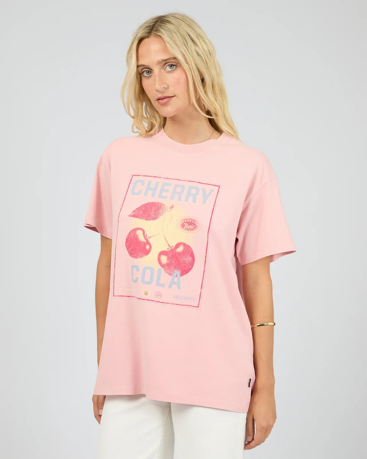 The Wild Cherry Relaxed Tee in pale pink is a casual, summer-ready staple designed for effortless style and comfort. Designed with an All About Eve exclusive cherry sparkling tonic graphic, it gives a pop of fun to your wardrobe. Its relaxed fit and classic tee silhouette make it easy to wear. The Wild Cherry Relaxed Tee is perfect for pairing with shorts, skirts, or jeans for versatile, everyday styling.
