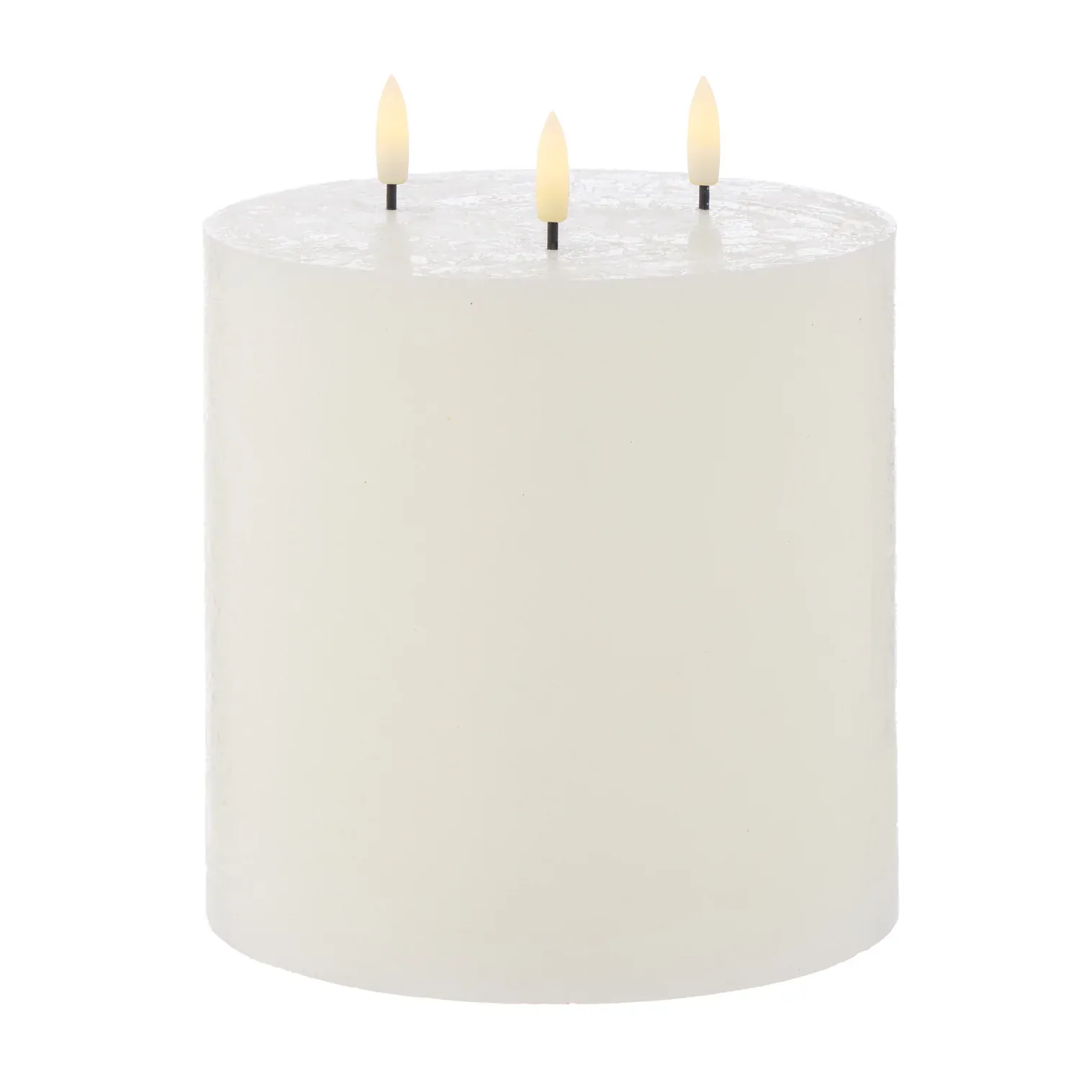 Made from paraffin wax in a rustic white shade with three wicks, it cleverly and safely mimics a real candle.