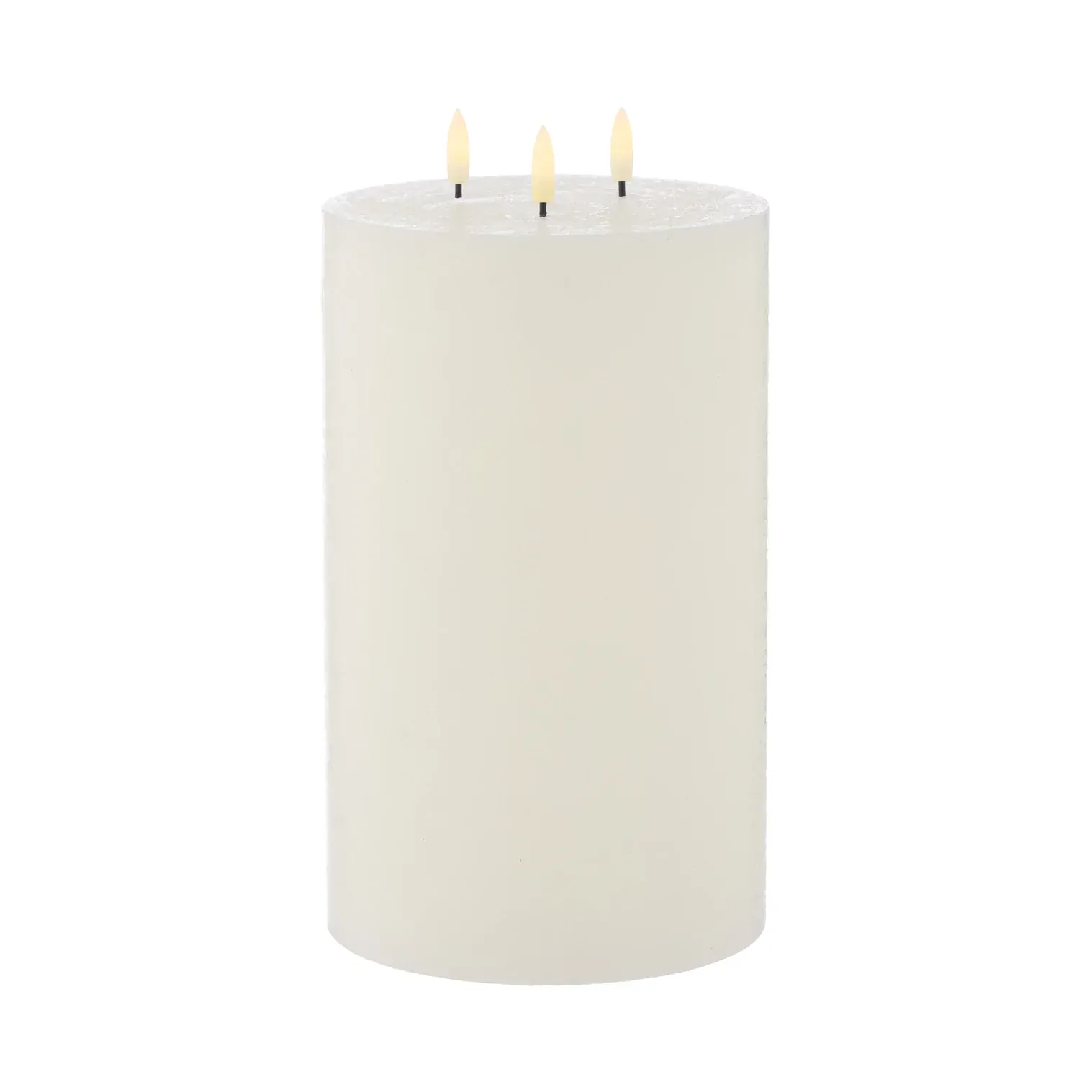 Made from paraffin wax in a white shade with three wicks, it cleverly and safely mimics a real candle.