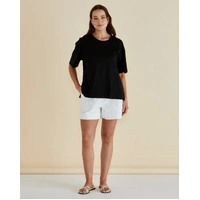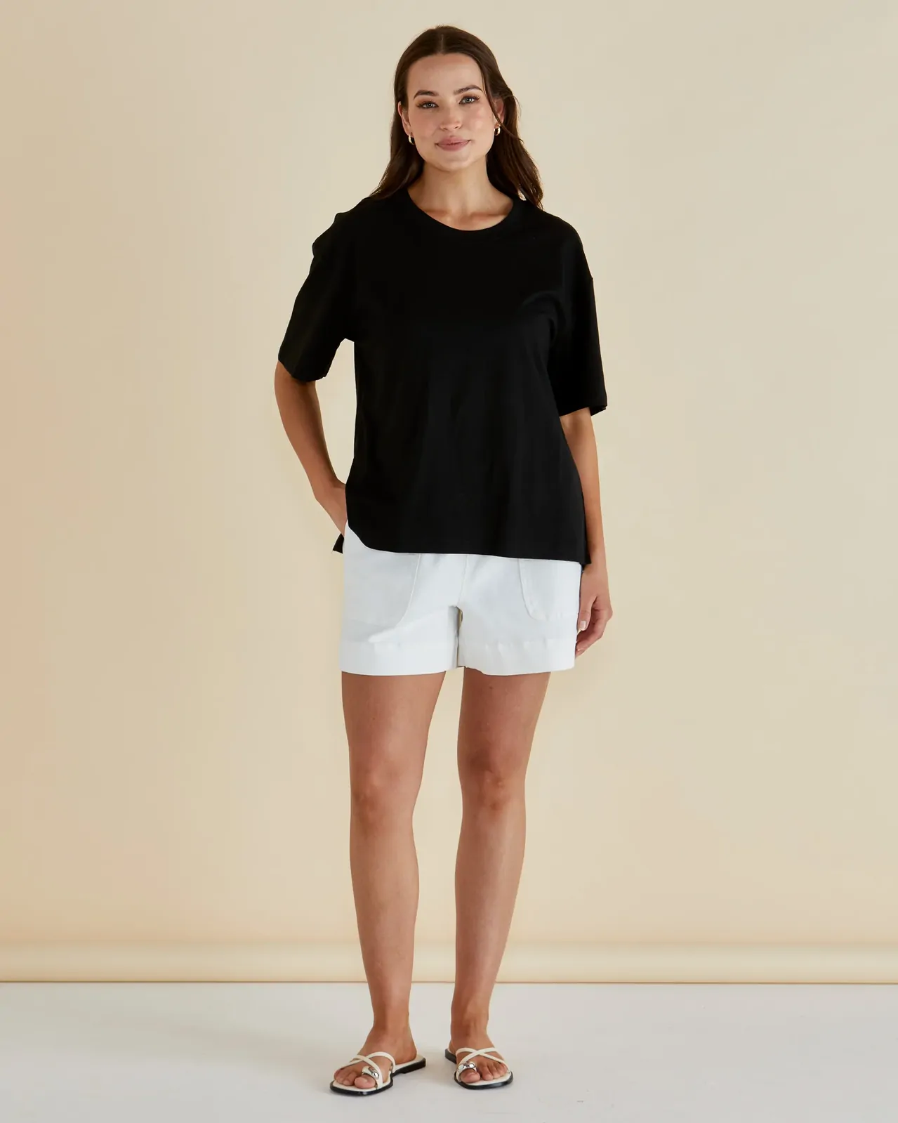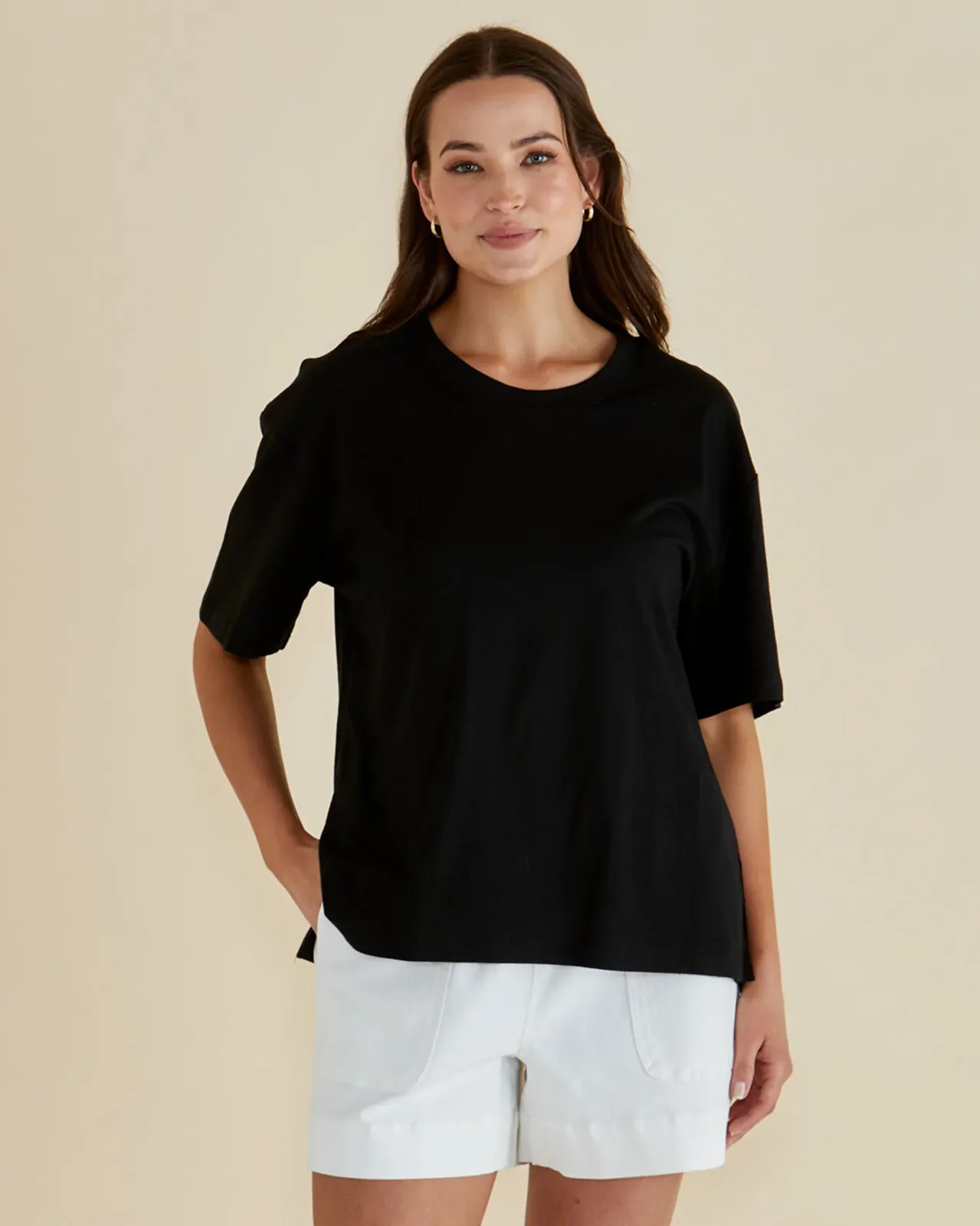 The Relax Boxy Tee redefines casual sophistication with its oversized fit and cotton jersey comfort. Designed with a scoop neckline, short sleeves, and side splits, it adds an elevated edge to everyday outfits. A chic silhouette that’s perfect for transeasonal layering or relaxed weekend wear. Simple yet refined.