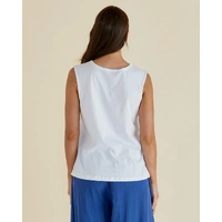 The Jordyn Tank offers relaxed comfort in soft cotton jersey with a scoop neckline and sleeveless design. Its straight hemline provides a classic, elevated look suitable for layering or standalone wear. An effortless essential for comfortable, transeasonal styling.
