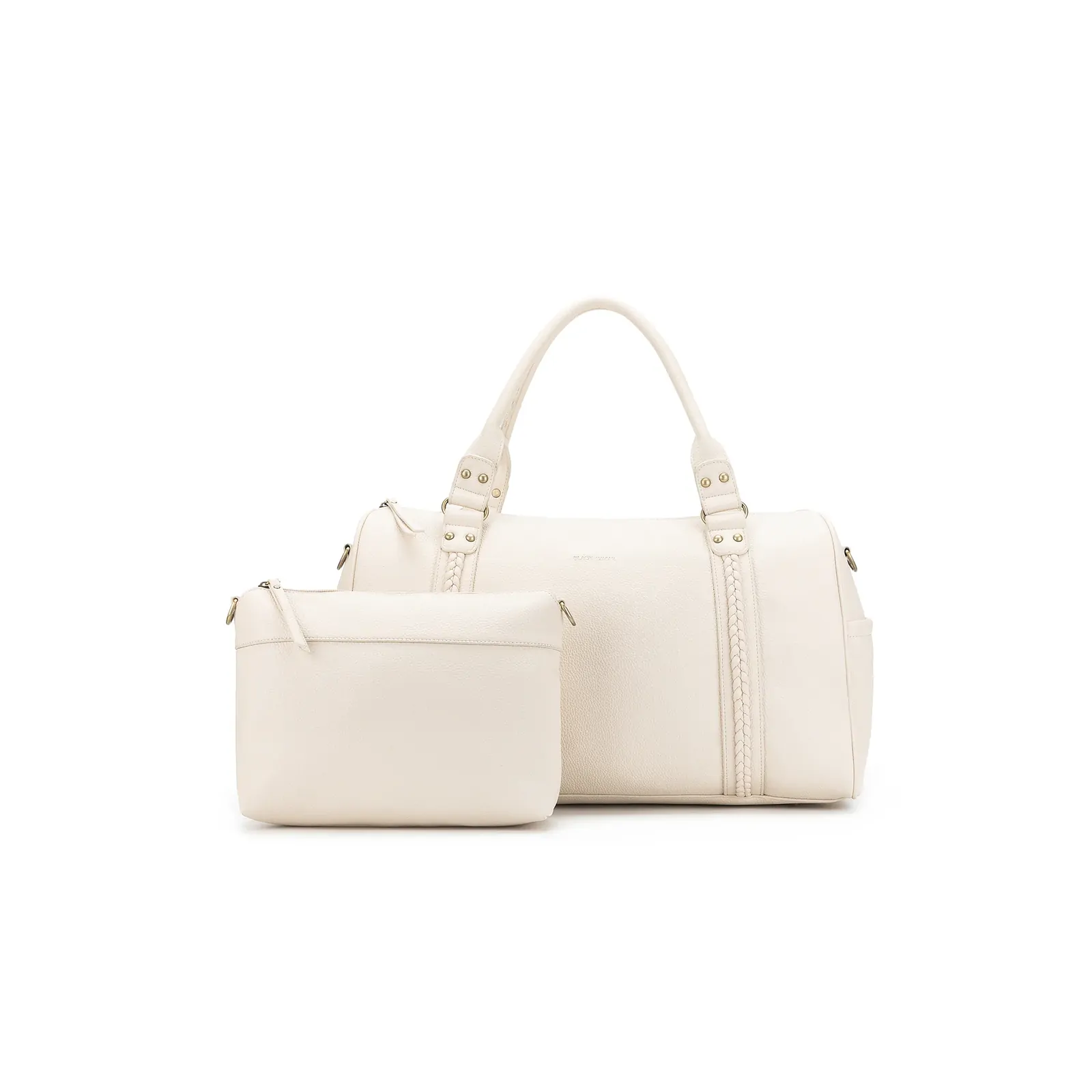 EXTERNAL FEATURES: 1x Back Zip pocket that converts into a slip sleeve to slide over luggage handles for seamless travel, 2 Side Pockets & Front plait features