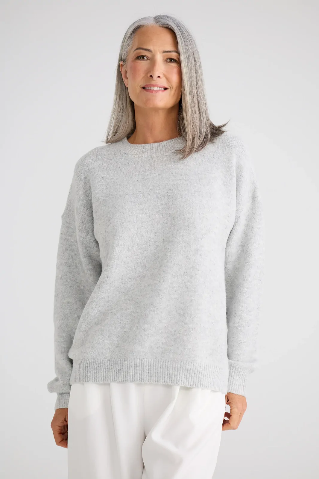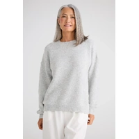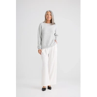 The Glimmer Knit is a versatile knitwear essential designed for effortless layering and everyday comfort. Featuring a classic round neckline and full-length sleeves, this style delivers a relaxed yet polished silhouette. Ribbed detailing at the cuffs, neckline, and hem provides subtle structure while maintaining softness and ease of wear. Finished with a clean, timeless shape, this knit transitions seamlessly from casual styling to elevated everyday looks.