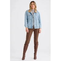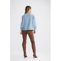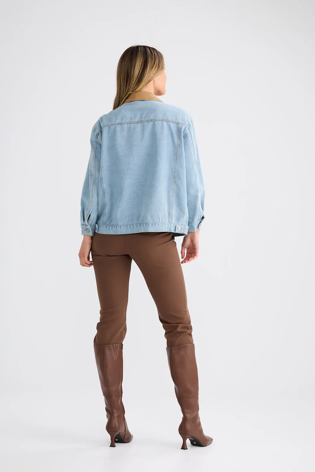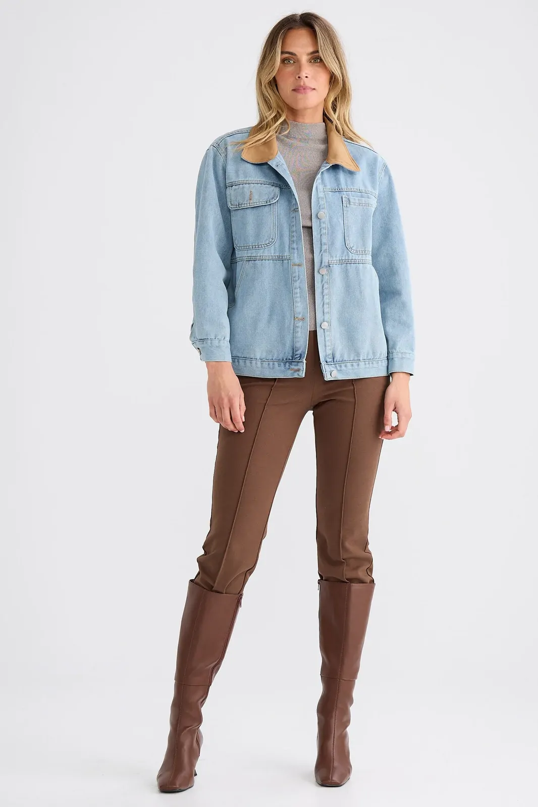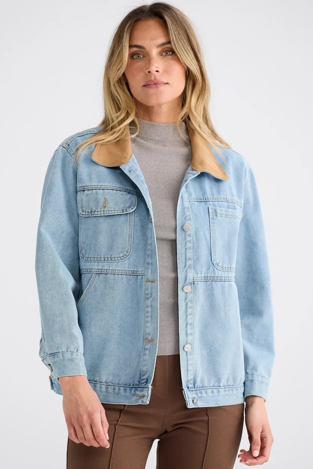 The Helene Denim Jacket is a classic layering piece featuring an open collared neckline and metal button closures through the front. Designed with long sleeves and functional chest pockets, this style offers an easy, everyday fit.