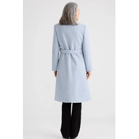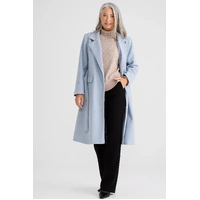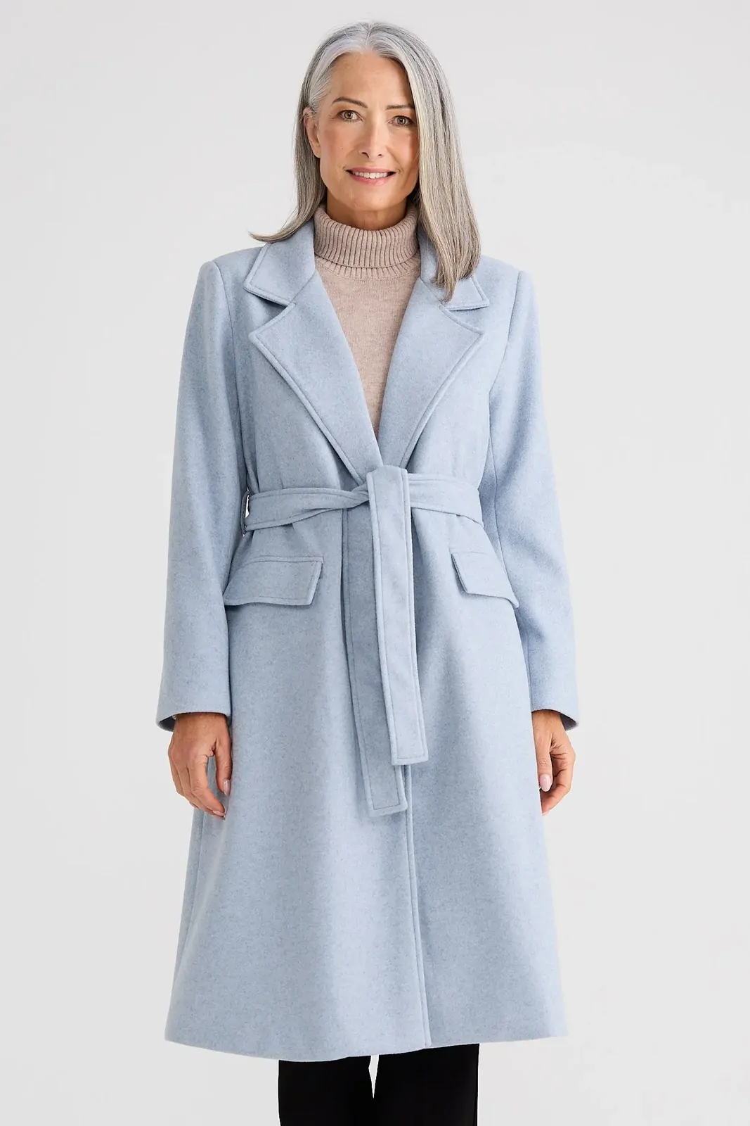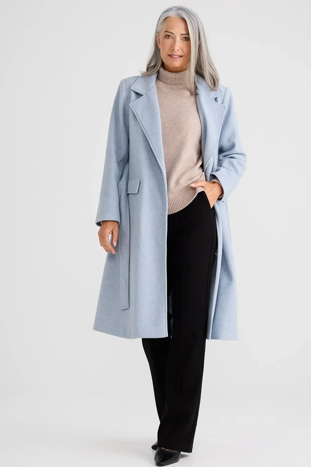 The Julianne Coat is a timeless, tailored outerwear piece designed to elevate cooler-weather styling. Cut to a flattering knee length, this fitted coat features a classic open lapel collar and a removable waist belt to define the silhouette. Clean welt hip pockets add functionality while maintaining a streamlined finish. Crafted in a warm camel tone, it layers effortlessly over knits or tailoring for a polished, refined look.