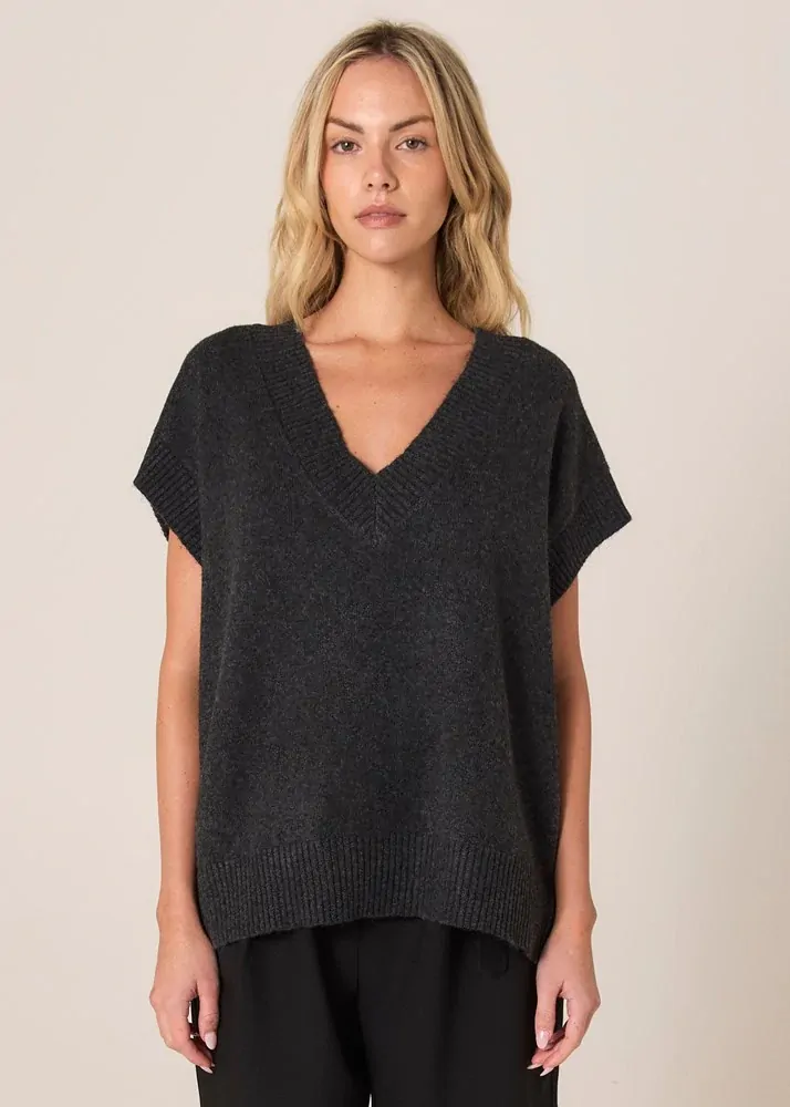 The Rae V-Neck Vest is a refined knit with a deep V neckline and wide rib trim. Soft and cosy in feel, it’s balanced by relaxed cap sleeves for an elegant, modern line. The ribbed hem adds subtle structure while keeping the look effortless. Style it over a crisp shirt or on its own for a classic, sophisticated finish.