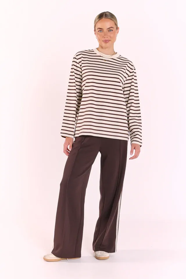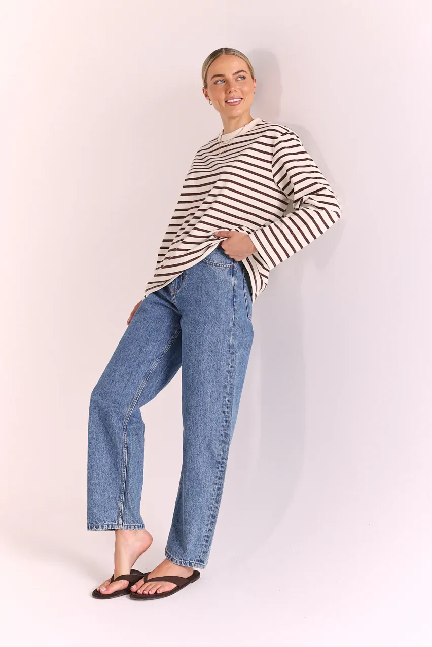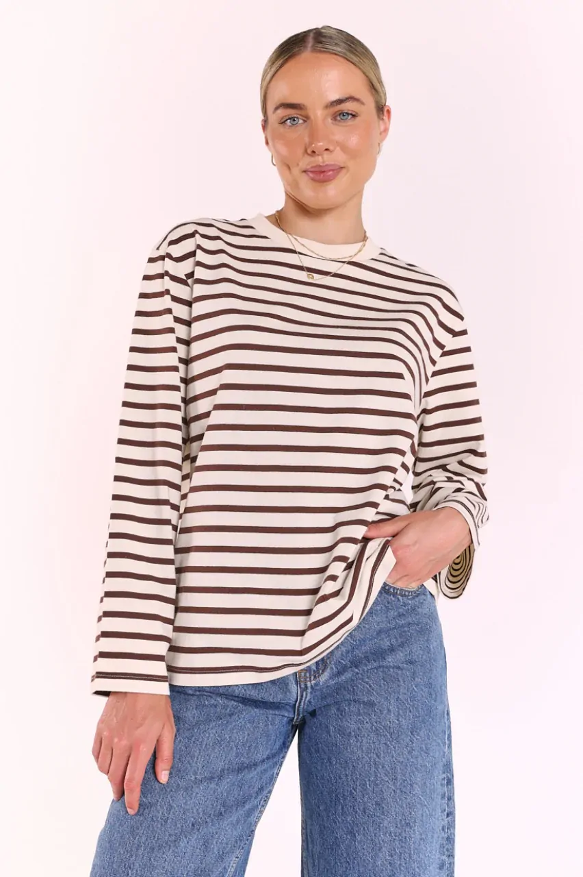 If you’re anything like us you can’t go past a classic high quality basic, and our ‘Carter Long Sleeve Tee’ in Chocolate Cream Stripe checks all the boxes!