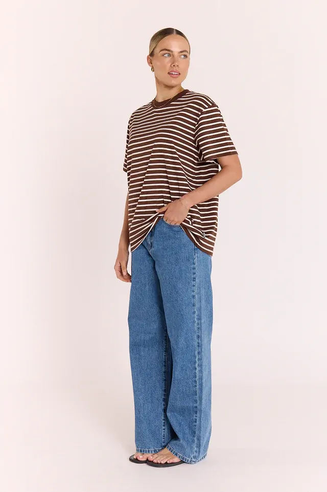 If you’re anything like us you can’t go past a classic high quality basic, and our ‘Carter Tee’ in Chocolate White Stripe checks all the boxes!