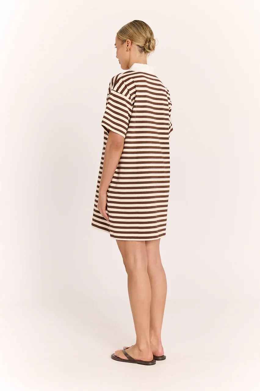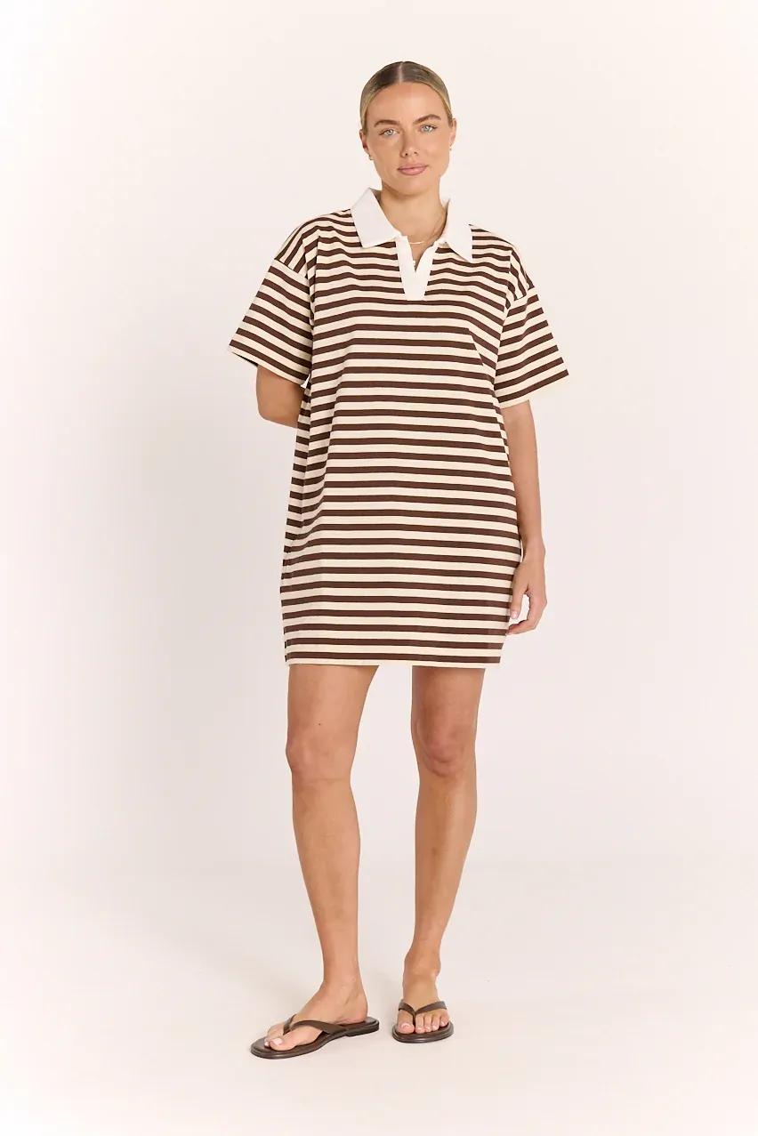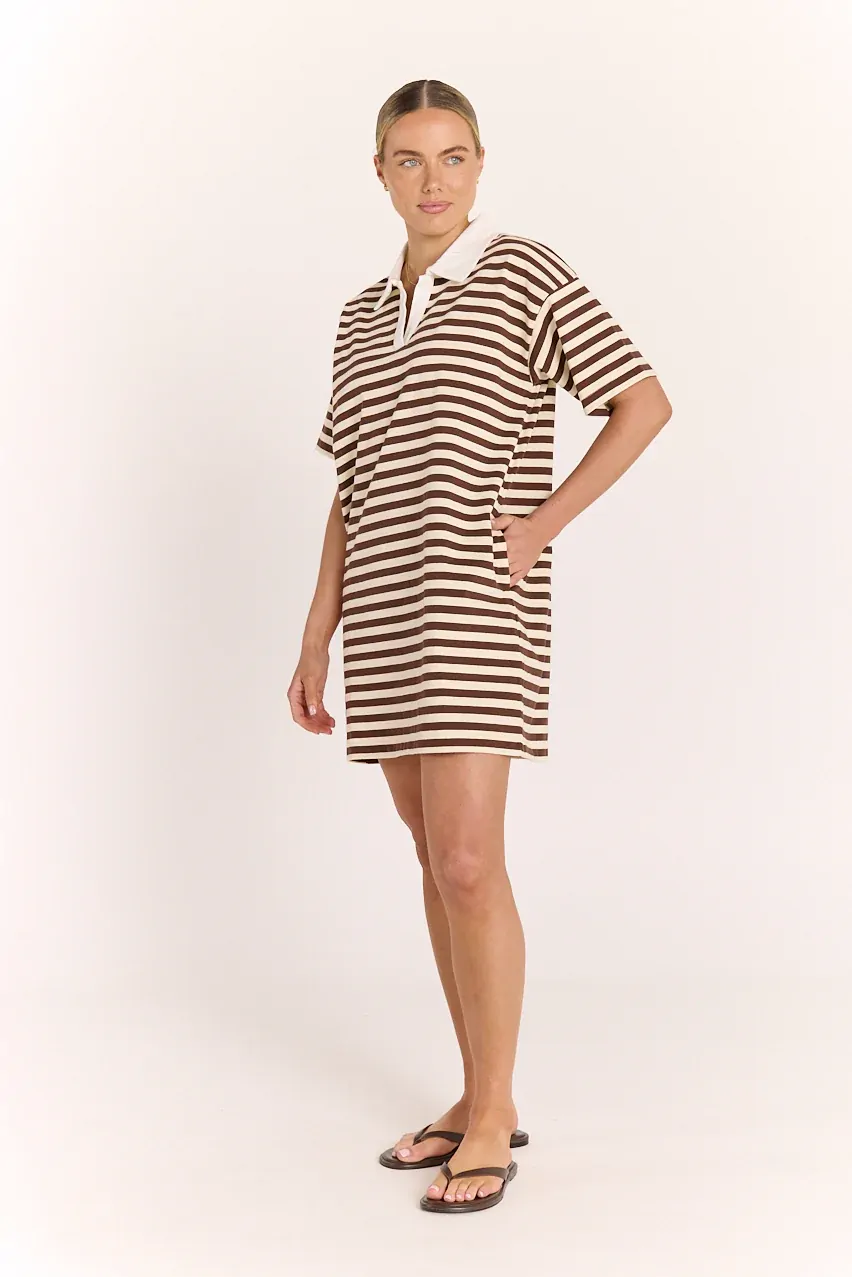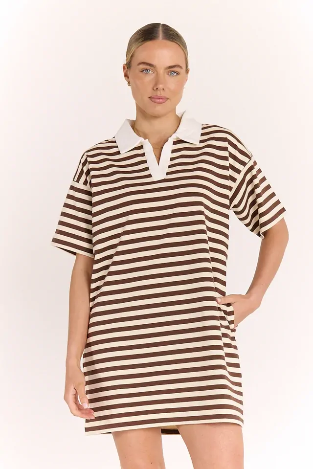 The 'Finn Rugby Dress' in Chocolate Stripe is the perfect season staple!