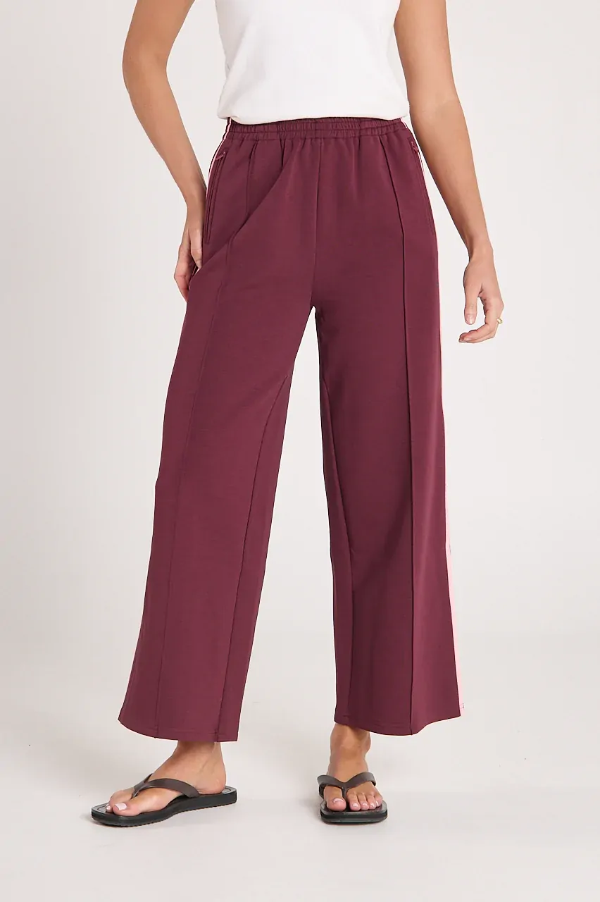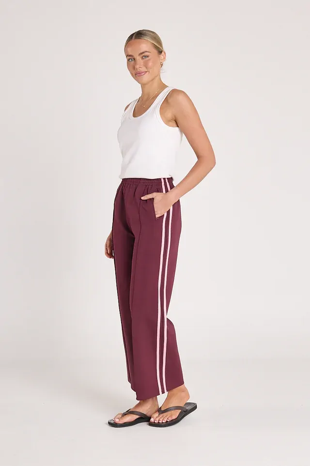 Meet the 'Noah Cropped Pant' in Plum Pink Stripe, the effortless and stylish twist on a classic comfort pant!