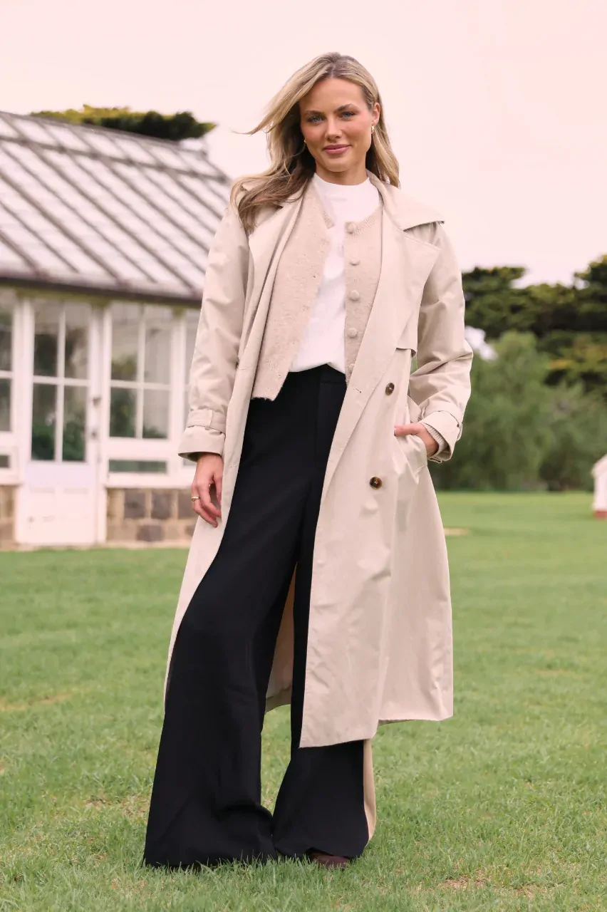Meet the 'Theo Longline Trench' in Stone, the cutest new addition to your coat collection!