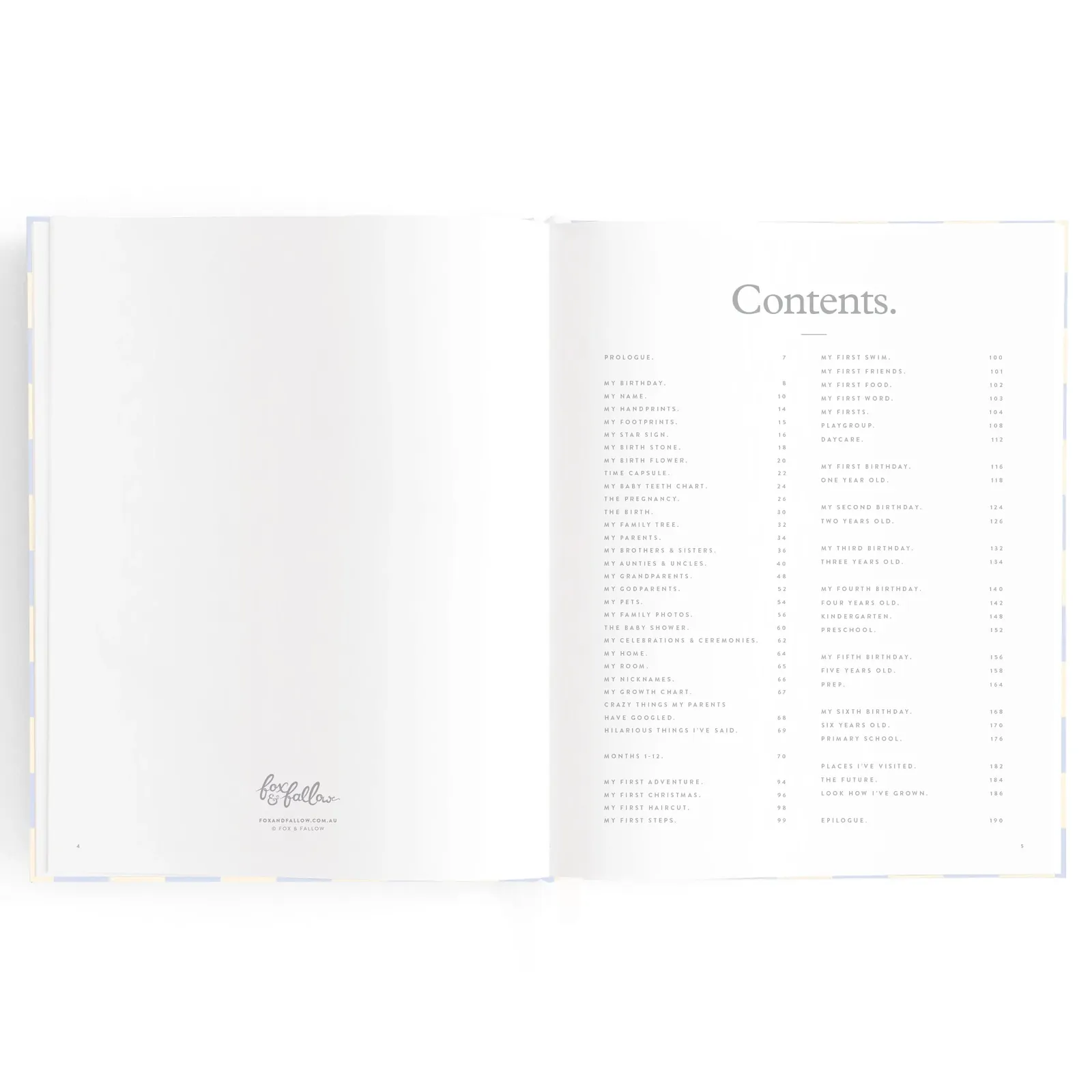 A beautiful keepsake for the whole family to enjoy. Includes: important milestones and firsts, family profiles, family tree and travel map, playgroup and daycare through to kindy and school years, time capsule, nicknames and celebrations, pets, friends, birthdays and more.