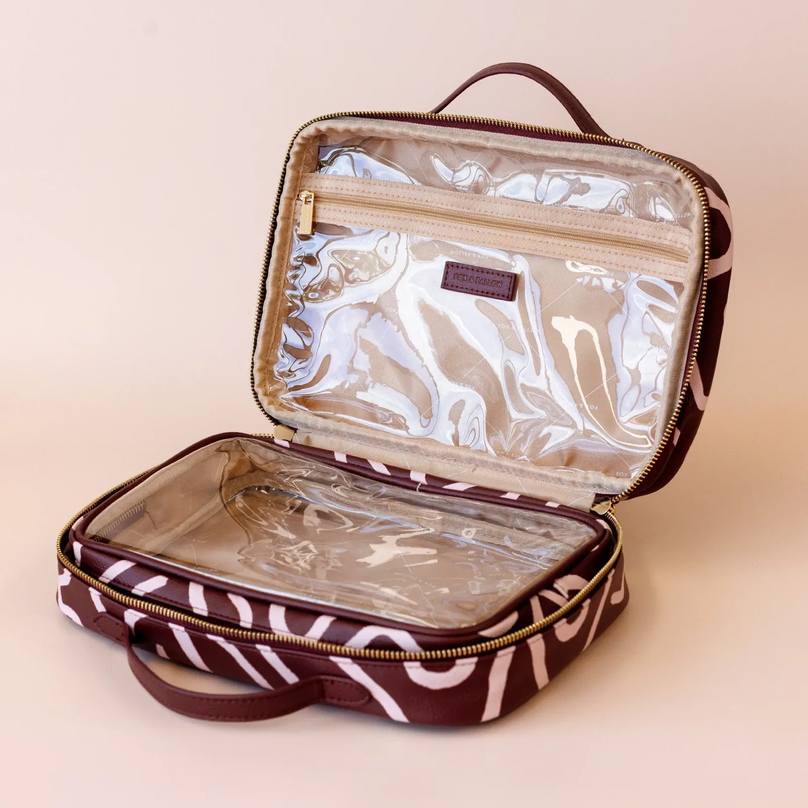 The ingenious removable clear bag is the true MVP here: it pops out of the main bag and it’s perfect for all your makeup & skincare essentials so you can find them easily through the clear plastic sides. Take it out and use it for your daily makeup & skincare routine or separately at airport security so you can breeze through the lines.