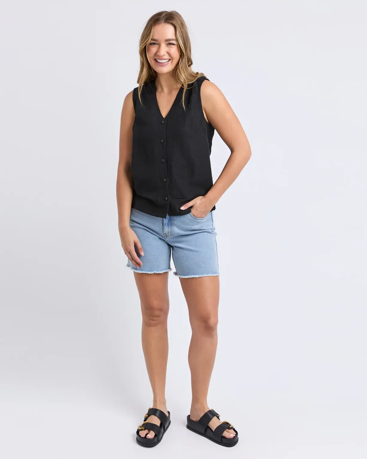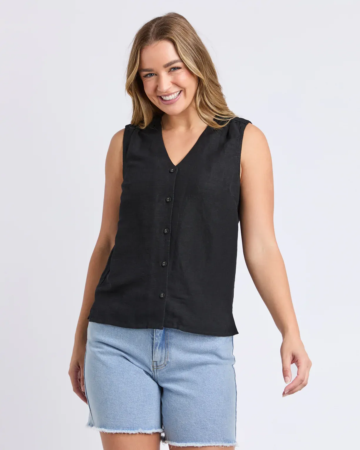 The Anara Top is your new sunny day favourite with its button front, sleeveless shape and relaxed vibe. Breezy and fun to wear, it is the perfect throw on for jeans, skirts or shorts.