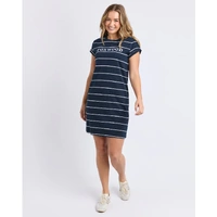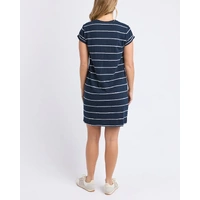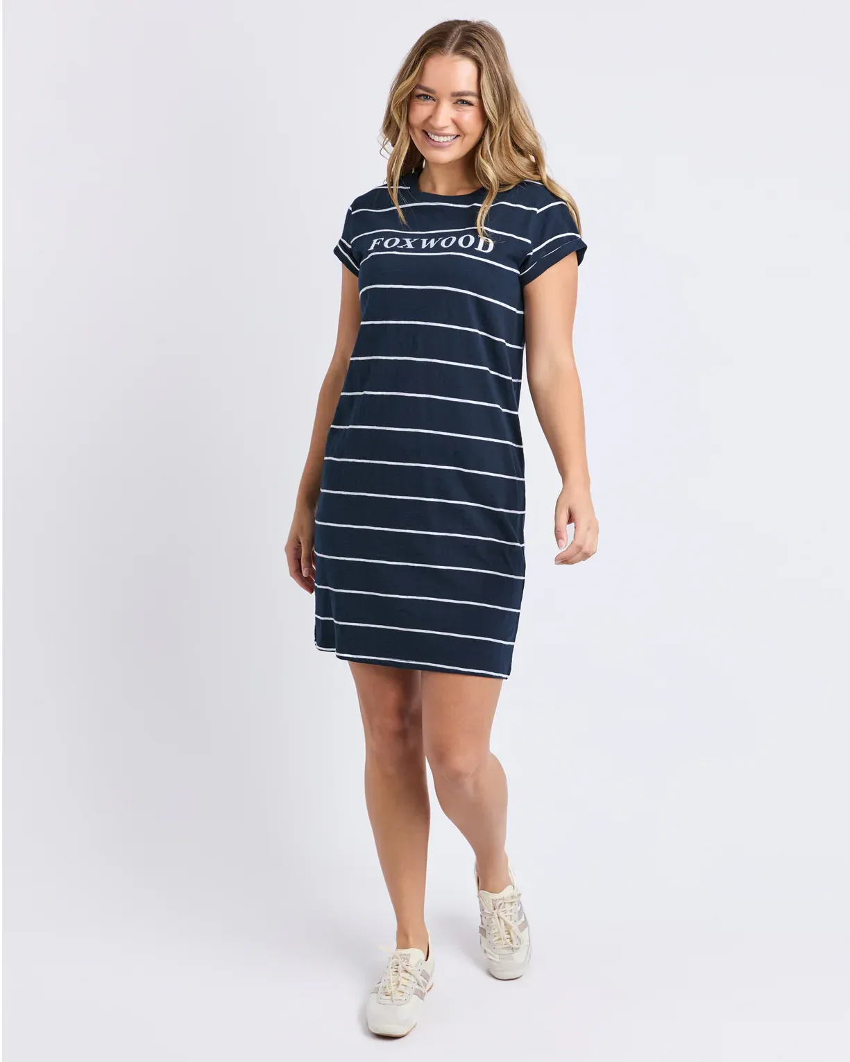 Say hello to your new stripe crush. The Caleb Stripe Dress keeps it playful with rolled sleeves, a relaxed fit and that embroidered Foxwood logo front and centre.