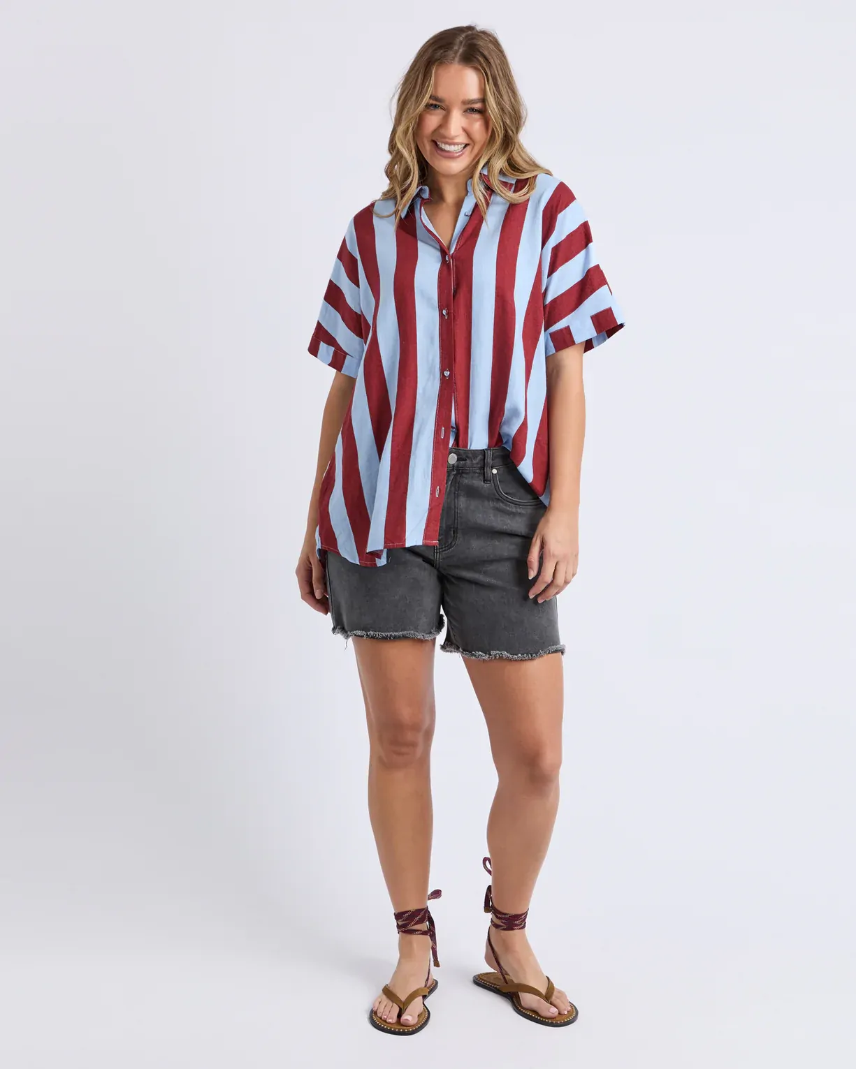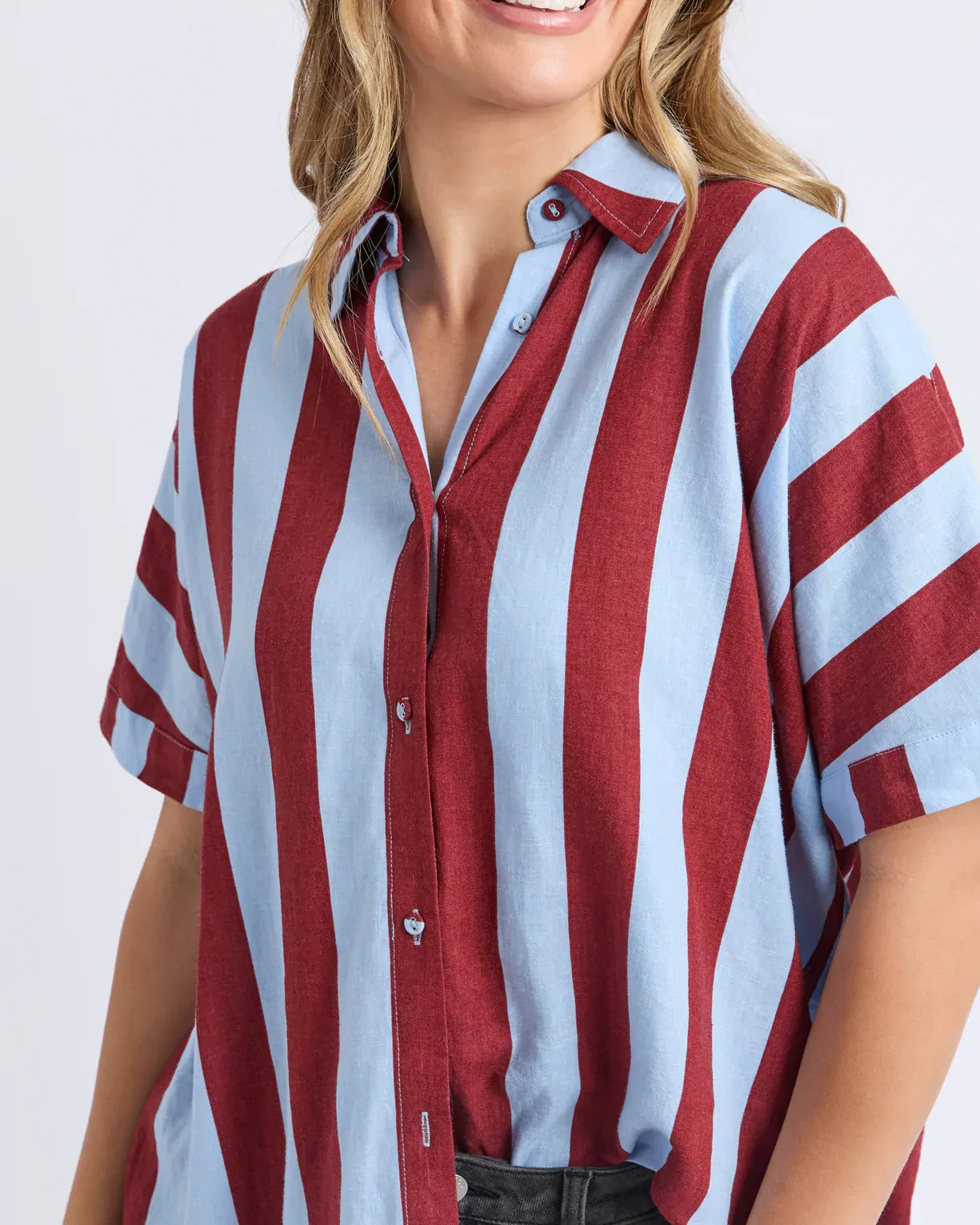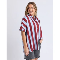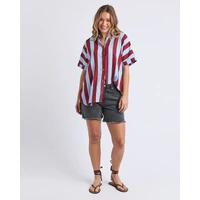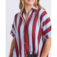 The Esmarie Stripe Shirt is all about bold and playful style. Designed in a breezy linen blend with eye-catching red and blue stripes, it features a relaxed fit, button-through front, and short sleeves.