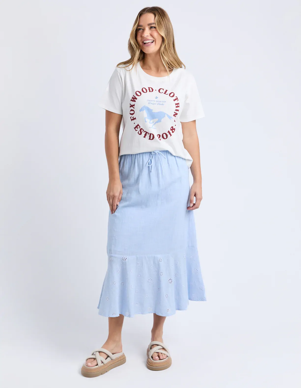 The EST 2018 Tee is a fun nod to Foxwood’s heritage, bringing cool, vintage-inspired energy to your casual look. Made from soft 100% cotton, this tee offers all-day comfort with an easy, relaxed fit. The bold chest print and classic round neckline make it the perfect throw-on piece for weekends, coffee runs, or laid-back days out.