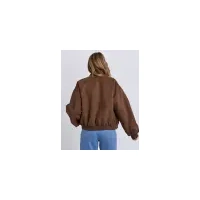 • The Evie Suede Bomber is here to level up your outerwear game. With a suede-look finish and classic bomber fit, it is the perfect piece to throw on when you want something more than just a basic jacket. Zip it up, hands in pockets, done.