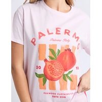 Add a fresh pop of colour with the Palermo Tee. Made from soft cotton, it features an exclusive Foxwood front print with a fun fruit-inspired design. The relaxed fit and classic round neckline make it an easy go-to for warm days and casual styling.