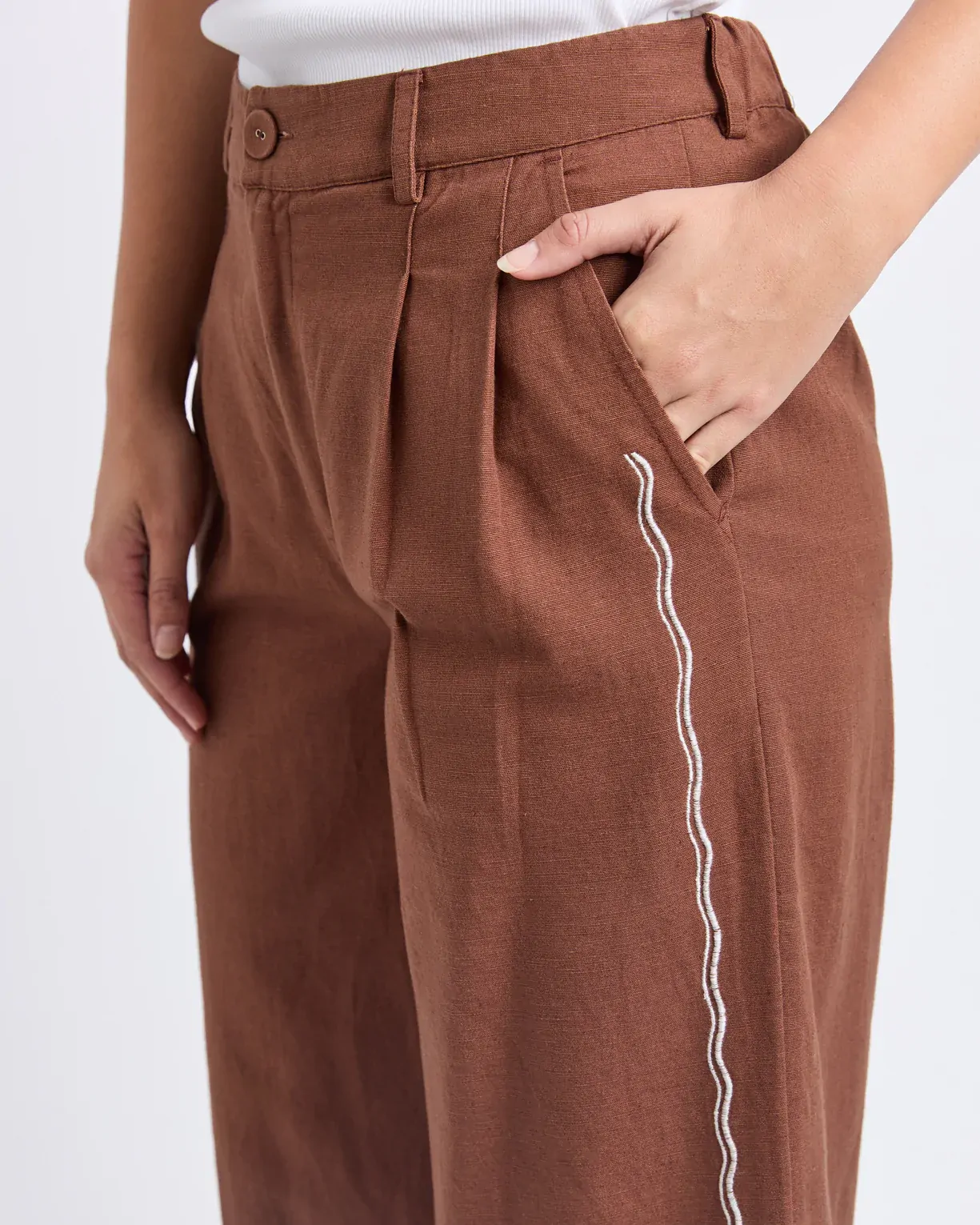 The Paradise Pant combines relaxed comfort with thoughtful detail. Made from a soft linen blend, it features side seam embroidery, an elastic waist, and a relaxed wide leg shape. Pair it with the Paradise Dress or a simple tee for an easy coordinated look.