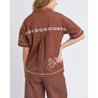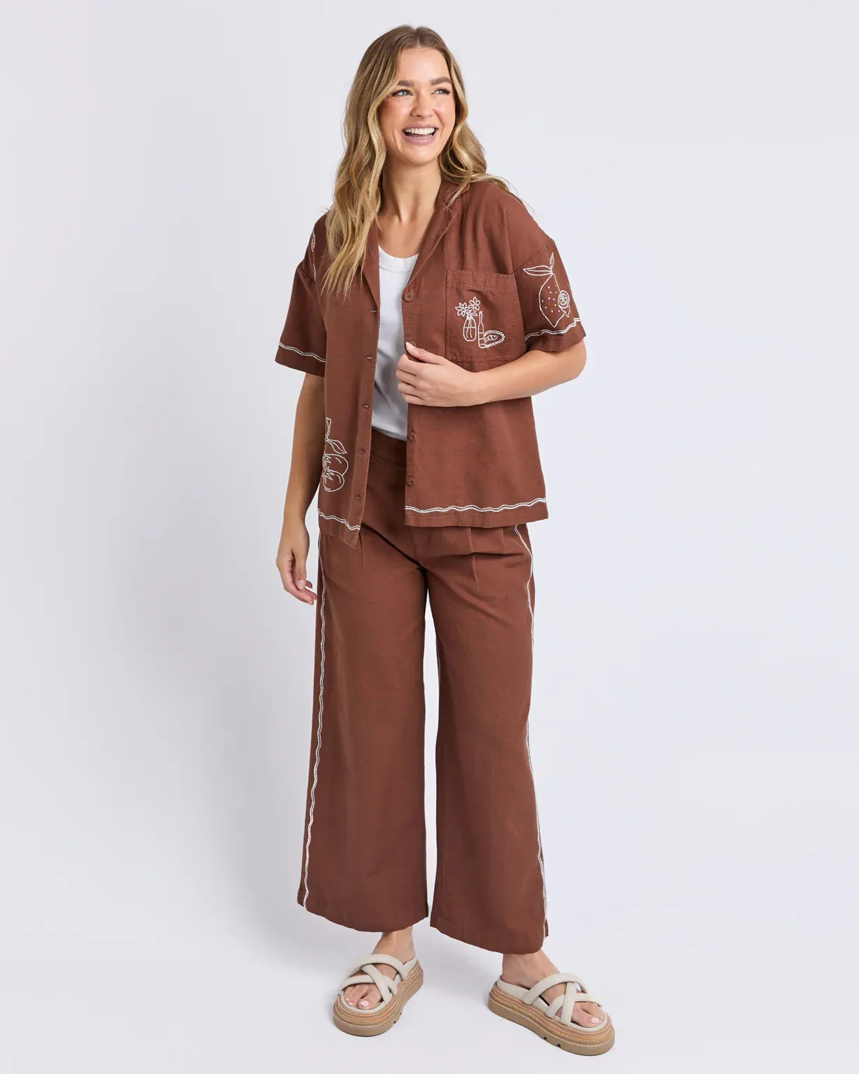 The Paradise Shirt is made for sunny days and good vibes. Featuring playful placement embroidery and a relaxed button-up fit, it adds instant personality to any outfit. Crafted from a soft linen blend, this short sleeve shirt pairs perfectly with the matching Paradise Pant for a statement summer look.