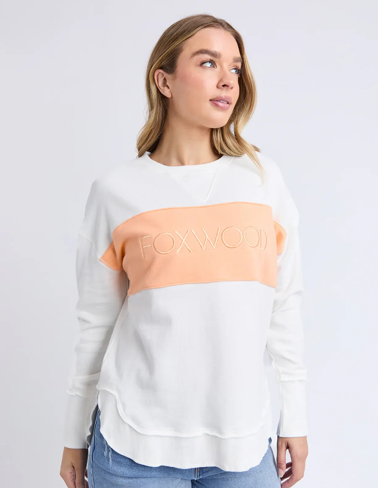 Tonal dressing is the ultimate in versatility. For those who love a coordinated look that doesn't stray too far into colour, the tonal Simplified Crew is for you. Its round neck, hi-lo hemline, side splits with raw edging, and classic Foxwood logo insert into the tonal colour panel are tonal dressing perfection. Everyone loves this best-selling crew from Foxwood Clothing.