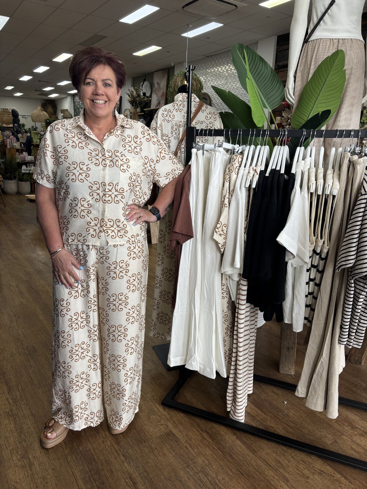 Fria Art Deco Tile Print Relaxed Pant - Beige