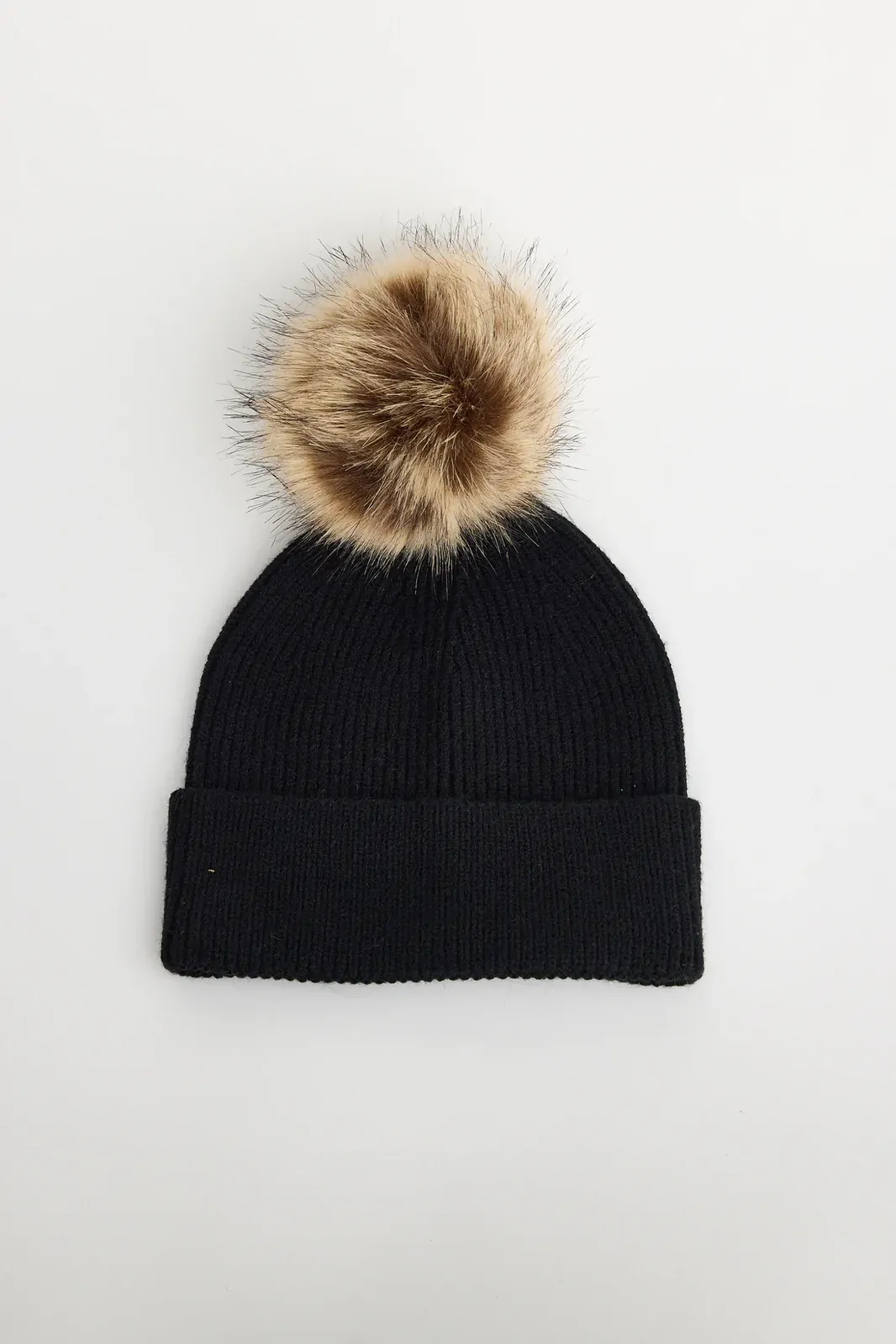 • Features a full plush faux-fur pom pom