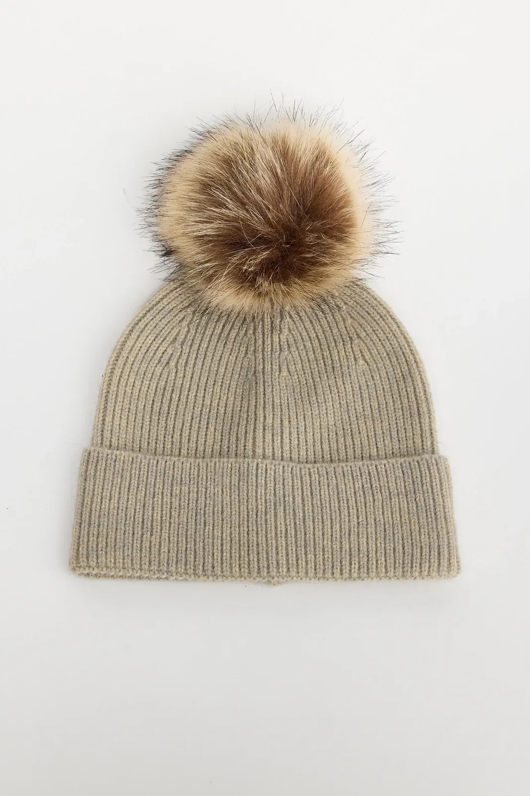 • Features a full plush faux-fur pom pom