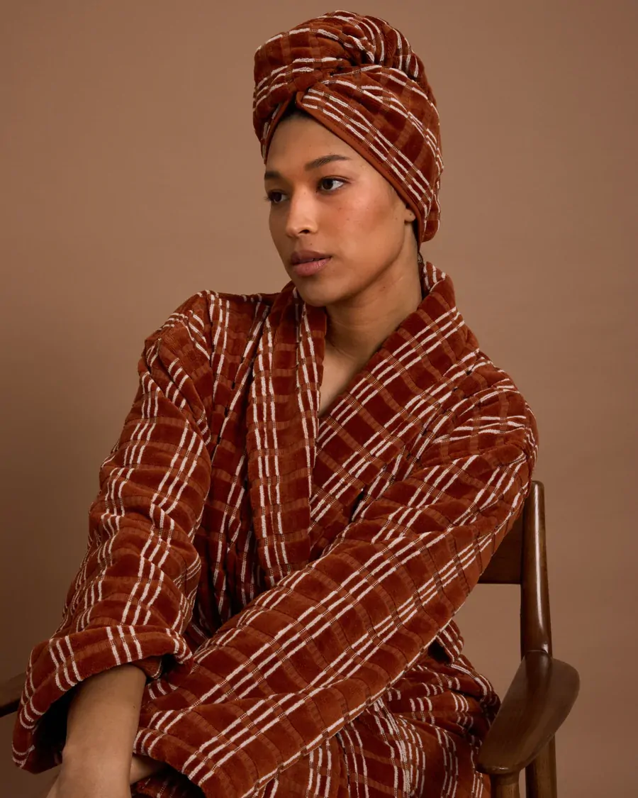 For the rituals worth repeating. The hair wrap is crafted from plush and absorbent 100% Australian cotton. Designed to gently dry and protect your hair after every shower, it stays secure with button fastening, making your post-bath routine extra cosy.