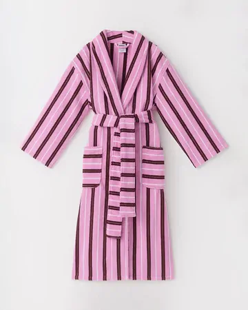 Part of our limited-release collection, the Hommey Robe is designed for the gentle rhythms of home, unhurried starts, easy evenings, and every quiet moment in between. Crafted in yarn-dyed stripes with a relaxed, boxy silhouette, it brings a comforting softness to your everyday with a refined, easy drape that feels as good as it looks.
