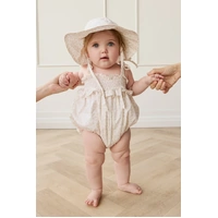The Cleo Playsuit – Aries Mauve is a sweet and playful one-piece, featuring a soft floral print on a light base. With adjustable shoulder ties, a ruffled bodice, and elasticated leg openings, this playsuit is designed for comfort and charm—perfect for warm days or layering with a cardigan.