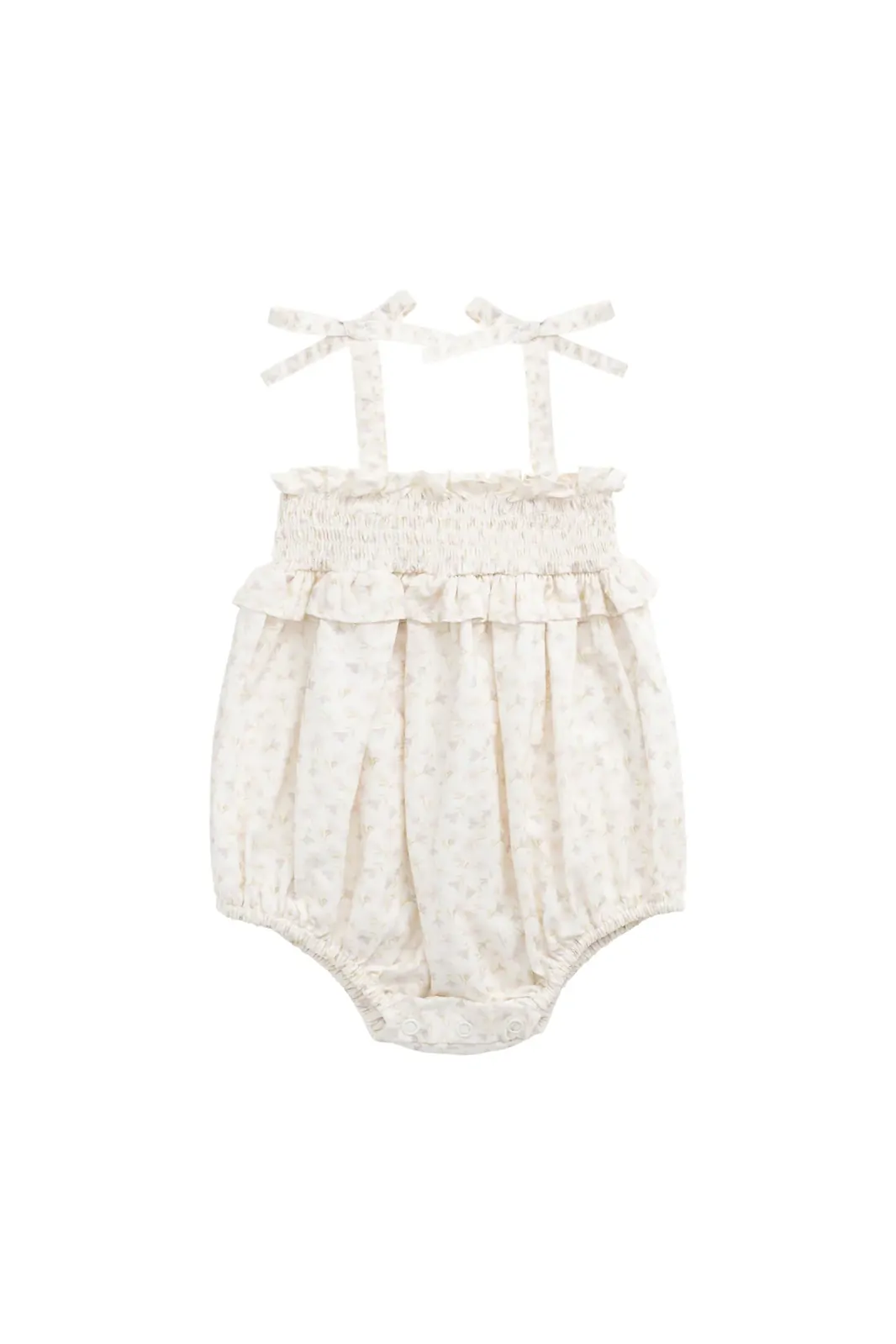 • Light floral playsuit with ruffled bodice and bow-tie straps