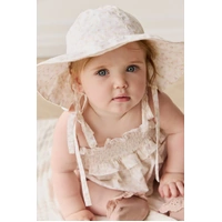 A beautiful blend of comfort and style, the Noelle Hat in Aries Mauve is designed to keep your little one cozy while adding a touch of elegance. Featuring a delicate floral print on a white base, a wide brim for gentle sun protection, and tie straps to keep it securely in place. This hat is crafted from 100% Organic Cotton for a soft and breathable fit.