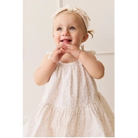 A beautifully dainty piece for your little one, the Winnie Dress in Aries Mauve is designed with delicate shoulder ties and a softly gathered skirt for a light, flowing silhouette. The subtle floral pattern on a soft neutral base adds a gentle charm, making it perfect for warm days or layering with a cardigan in cooler weather.