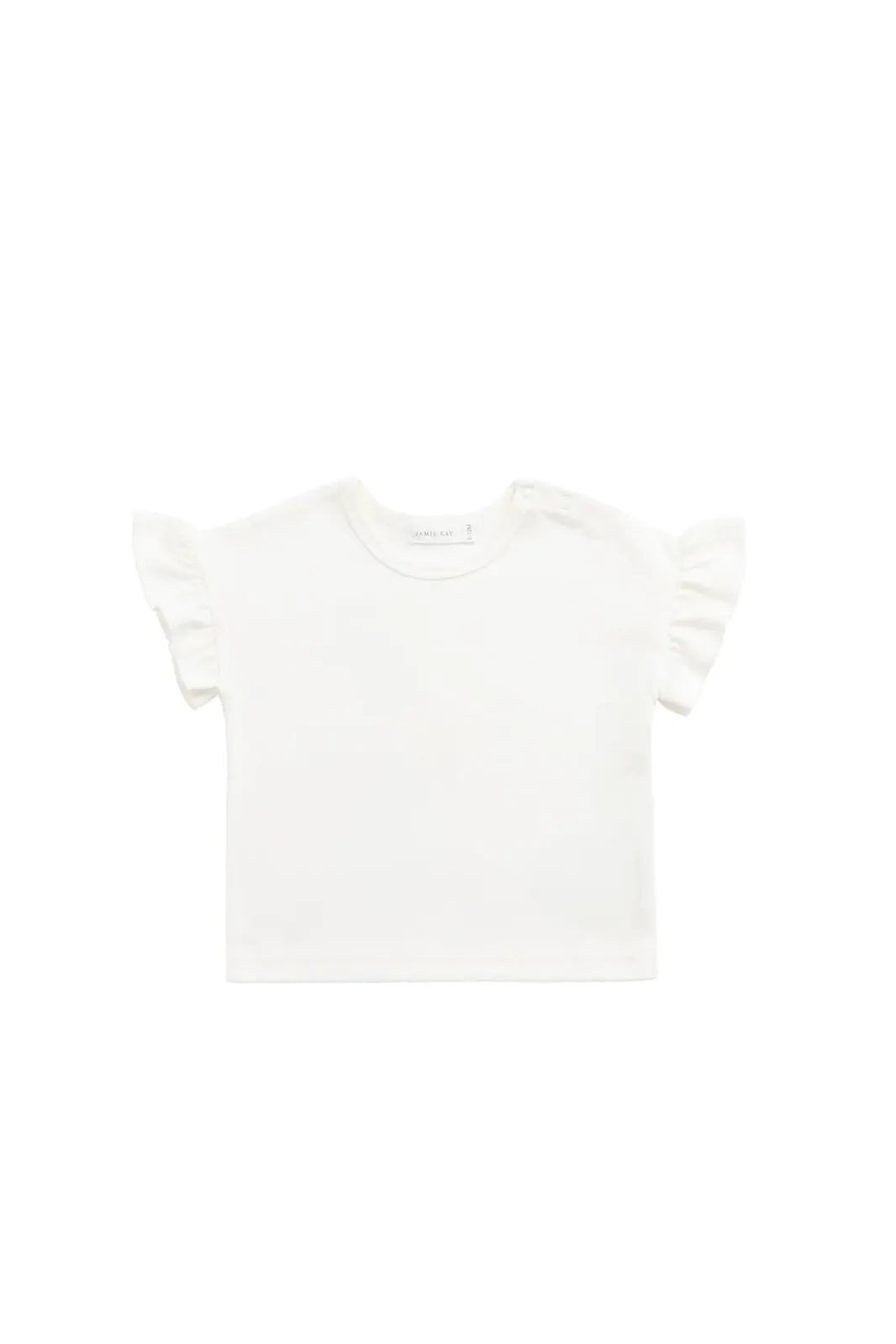 Delicate and timeless, the Antoinette Top in Parchment is a dreamy addition to your little one’s wardrobe. Crafted from 100% Pima Cotton, this piece features dainty ruffled sleeves and two subtle domes on the shoulder for easy dressing. The soft buttery parchment hue adds a gentle charm, perfect for layering or wearing on its own.