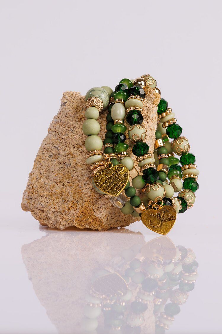 This bracelet is a reflection of her energy, her artistry, and the beautiful madness that makes her who she is. A stunning mix of greens—light, dark, matte, shiny, and marbled—represents her depth, her vibrance, and the way she can turn even the simplest moment into something magical. Gold accents weave through the design, adding warmth and a touch of elegance, just like the light she brings into every room she enters. Tiny diamantés are delicately placed throughout, catching the light and adding just the right amount of sparkle—because Kimmy Lee was born to shine.